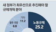 기업들이 새 정부가 추진해야 할 개혁과제로 ‘노동규제’를 첫손에 꼽았다. 경제단체들도 윤석열 대통령 취임을 앞두고 노동규제 등 규제개혁의 필요성을 강조했다. 전국경제인연합회는 9일 대기업 250곳과 중소기업 250곳 등 500개 기업을 대상으로 한 설문조사에서 최우선 규제개혁 추진과제로 응답기업의 25.2%가 ‘노동규제’를 꼽았다고 밝혔다. 이어 ‘환경 및 에너지’(15.9%), ‘대기업’(14.1%), ‘건설·건축’(13.5%) 등의 순이었다. 새 정부의 규제개혁정책 방향에 대해서는 ‘경기진작을 위한 한시적 규제 유예’가 28.5%로 가장 컸다. ‘글로벌 스탠더드에 어긋나는 낡은 규제 개선’이 22.9%, ‘신산업 육성을 위한 관련 규제 정비’가 20.4%로 뒤를 이었다. 한편 기업들이 느끼는 규제개혁 체감도는 95.9포인트로 여전히 낮았다. 지난해 92.1포인트보다는 상승했지만 100포인트에는 미치지 못했다. 규제개혁 체감도는 전년도 정부의 규제개혁에 대해 기업들이 느끼는 만족 여부를 조사한 것으로 100을 넘으면 ‘만족’, 그렇지 못하면 ‘불만족’이 더 크다는 뜻이다. 경제단체들은 이날 윤 대통령 취임 관련 논평을 통해 노동규제 등 각종 규제개혁의 필요성을 강조했다. 대한상공회의소는 “새 정부는 물가·환율·공급망 차질 등 단기적인 위기요인을 극복하는 동시에 중장기적으로 국가·사회 발전과 경제 재도약을 이뤄 주기를 기원한다”며 “규제·노동·공공·교육 등 각종 개혁과제의 해결에 적극 나서주길 바란다”고 밝혔다. 대한상의는 이와 함께 통합적인 관점에서 민관이 함께 머리를 맞대 해결하기를 기대했다. 전국경제인연합회는 “민간의 성장활력 재점화를 통한 경제 살리기가 시급한 상황”이라며 “미래 먹거리 발굴과 양질의 일자리 창출을 위한 규제 혁파 등에 전력을 다해 달라”고 주문했다. 한국경영자총협회는 “글로벌 스탠더드에 맞는 과감한 규제개혁과 노사관계 선진화를 위한 법·제도 개선에 앞장설 것”을 당부했다. 우리 경제의 역동성을 높일 수 있는 ‘기업 하기 좋은 환경’을 만들어 기업 투자 활성화, 일자리 창출, 경제성장이라는 선순환이 일어날 수 있도록 해달라는 당부다. 중소기업중앙회도 “최저임금, 주 52시간제, 중대재해처벌법 등 중소기업을 힘들게 하는 과도한 규제를 개선해야 한다”며 “상생위원회 설치 등 양극화 해소를 위한 제도적 기반을 통해 대기업과 중소기업이 함께 성장하는 경제구조로 전환해야 한다”고 말했다. 홍석호 기자 will@donga.com}