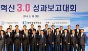 #1. 삼성전자 협력업체로 인쇄회로 기판 테스트 사업을 하는 중소기업 ‘엘엠디지털’은 최근 1년간 삼성전자 지원으로 핵심 공정을 개선하는 작업을 했다. 협력 성과는 놀라웠다. 엘엠디지털의 테스트 속도는 분당 59개에서 157개로 166% 늘어났다. 연간 13억 원의 재무적 이익도 얻을 수 있었다. #2. LG전자 협력업체로 전기저항기를 제조하는 중소기업 ‘스마트전자’도 LG전자와 함께 1년간 스마트공장 구현을 추진해 왔다. 제조 현장에 정보기술(IT)을 적용한 성과는 대단했다. 생산성은 30% 향상된 반면 불량률은 51.2% 감소했다. 대기업이 중견·중소기업인 2·3차 협력업체와 손잡고 이들의 생산혁신을 지원하는 ‘산업혁신 3.0’ 사업성과가 18일 발표됐다. 산업혁신 3.0 중앙추진본부는 이날 서울 중구 소공로 플라자호텔에서 성과보고대회를 열고 삼성, 현대자동차, 포스코, LG, 현대중공업, SK, 두산, 롯데, 한화, KT, 효성 등 대기업과 협력사들의 합동 혁신사례를 공유했다. 본부에 따르면 지난 한 해 동안 이 프로젝트에는 총 1957개 중소기업이 참여했다. 이 가운데 대기업 협력사 1542개의 혁신활동을 조사한 결과 이들의 평균 불량률, 납기 준수율 등이 평균 51.7% 개선된 것으로 나타났다. 산업혁신 3.0 공동추진본부장인 윤상직 산업부 장관은 이날 우수한 성과를 낸 54개 기업과 적극적으로 협력사를 지원한 대기업 11개사, 또 유공자 10명을 포상했다. 이날 행사에는 윤 장관을 비롯해 이동근 대한상공회의소 상근부회장, 11개 참여 대기업 관계자, 중견·중소기업 및 공공기관 관계자 등 400여 명이 참석했다.임우선 기자 imsun@donga.com}