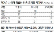 미국인들이 같은 사건을 두고 인종과 정치적 성향에 따라 극명하게 다른 인식을 가지고 있다는 여론조사 결과가 나왔다. 미주리 주 퍼거슨 시에서 백인 경찰의 총격으로 숨진 흑인 청년 마이클 브라운 사건이 ‘인종적 문제를 제기했느냐’는 질문에 인종에 따라 2배, 정치적 성향에 따라 3배 정도의 인식 차이가 났다. 퍼거슨 시 일대의 소요 사태를 진압하기 위해 주방위군이 투입됐고 미 역사상 최초의 흑인 대통령인 버락 오바마 대통령이 역시 흑인인 에릭 홀더 법무장관을 급파했지만 시위는 가라앉지 않고 있다. 여론조사기관 퓨리서치센터가 14∼17일 18세 이상 미국 성인 1000명을 대상으로 실시한 여론조사 결과에 따르면 흑인 응답자의 80%는 총격 사건과 이에 따른 시위 사태가 ‘논의가 필요한 중요한 인종 문제를 제기했다’고 답했다. 반면에 백인 응답자는 37%만이 그렇다고 답했다. 인구 2만1000여 명 중 65%가 흑인인 퍼거슨 시 주민들은 이번 사건이 소수의 백인이 주도하는 소도시에서 흑인들이 얼마나 부당한 대우를 받고 있는지 상징적으로 보여준다고 주장하고 있다. 퍼거슨 시 경찰 중 흑인 비율은 6%에 불과하고 실업률은 9%이며 21%의 가구가 빈곤선 이하의 삶을 영위하고 있다. ‘이 사건이 필요 이상으로 주목받고 있다’고 생각한 흑인 응답자는 18%인 반면에 백인 응답자는 47%였다. 이 응답에 정치적 성향에 따른 인식차는 더 컸다. 응답자 중 민주당원의 68%는 ‘중요한 인종적 문제를 제기했다’고 여기는 반면에 공화당원은 22%만 이에 동의했다. 반대로 공화당원의 61%, 민주당원의 21%는 ‘필요 이상으로 주목받고 있다’고 답했다. 설문조사에서 흑인 응답자의 65%는 ‘브라운 군 사망 이후 경찰의 대응이 도를 넘었다’고 답했지만 백인은 33%만 그렇게 생각했다. 경찰 조사 결과의 신뢰도에도 인종적 차이가 크게 드러났다. 흑인 응답자의 76%는 ‘경찰 조사를 전혀 또는 별로 신뢰하지 않는다’고 답했지만 백인의 52%는 ‘상당히 또는 매우 신뢰한다’고 답했다. 또 흑인 응답자의 54%는 ‘이번 사건을 다룬 뉴스를 관심 있게 지켜봤다’고 했지만 백인은 그 비율이 25%에 불과했다. 한편 오바마 대통령은 18일 백악관에서 기자회견을 열어 “홀더 장관이 20일 퍼거슨 시에서 그동안 조사를 벌여온 연방수사국(FBI) 요원 등 주요 관계자를 만나 진상 규명과 사태 해결을 위해 노력할 것”이라고 말했다. 이어 그는 “경찰의 과도한 공권력 사용에는 어떠한 변명도 있을 수 없다”며 “주방위군 역시 제한적으로 동원되길 원한다”고 당부했다. 그러면서 “(시위대가) 약탈을 하고 경찰을 공격하는 것은 긴장만 더 고조하고 혼란을 가중시킬 뿐”이라고 지적했다. 하지만 시위는 19일 새벽까지 이어졌다. 미주리 고속도로 순찰대 론 존슨 대장은 “밤새 31명의 시위대를 체포했으며 이 중에는 캘리포니아와 뉴욕에서 원정 온 사람도 포함돼 있다”며 “시위가 더욱 조직화되고 있다”고 말했다. 그는 “경찰들이 (시위대로부터) 심각한 총격을 받았지만 우리는 단 한 발의 총탄도 쏘지 않았다. 시위대에서 두 명이 총에 맞았다”라고 덧붙였다. 17일부터 이틀 연속 0시부터 오전 5시까지 내려진 통행금지 조치는 19일부터 해제됐다. 브라운 군의 유족은 이날 기자회견을 열어 브라운 군이 머리에 두 발, 팔에 네 발 등 최소 여섯 발의 총격을 받았고 몸에서 화약 성분이 검출되지 않았다는 자체 부검 결과를 공개했다. 유족과 변호사는 이런 사실만으로도 총을 쏜 대런 윌슨 경관을 기소할 수 있다고 주장했다.유덕영 기자 firedy@donga.com 워싱턴=이승헌 특파원 ddr@donga.com}