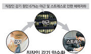 직장인들은 과도한 업무, 지속적인 야근, 스트레스가 반복되면서 감기에 노출되기 쉽다. 최근 한국다케다제약 화이투벤이 남녀 직장인 3000명을 대상으로 실시한 ‘직장인의 감기 유형 및 기간, 특징’ 조사 결과 67%가 지속되는 야근에 따른 체력 저하와 스트레스로 인해 감기에 걸린 경험이 있다고 답했다. 또 직장인들이 평균 감기를 앓는 기간이 일주일 이상으로 길게 나타났다. 한 번 감기에 걸리면 평균 일주일 지속된다고 답한 사람이 56.4%(1693명)였고 2주 이상 감기 증상에 시달린다는 경우도 21.3%(641명)에 달했다. 감기로 인한 괴로움도 심각하다. 한국인들이 주로 느끼는 증상인 코감기의 경우 코의 증상뿐 아니라 동반되는 두통이나 맹맹함 등으로 일상생활에 방해를 받는 경우가 흔하다. 그러나 감기로 연차 또는 병가를 사용하는 직장인은 100명 중 5명도 채 되지 않는다. 직장인 95%는 감기가 심하더라도 묵묵히 일하는 셈이다. 실제 이번 조사 결과에도 감기에 걸렸을 때 휴가를 내고 충분히 휴식을 취한다고 답한 사람은 4.8%에 불과했다. 감기는 장시간 지속되면 중이염, 축농증, 폐렴 등 합병증을 유발할 수 있으므로 2주일 이상 감기가 지속된다면 단순한 감기로 여기지 말고 전문의와 상의하는 것이 좋다. 일반적인 감기 증상은 충분한 휴식과 영양을 취하면 개선된다. 또 푹 쉴 수 없거나 면역력이 약하다면 증상이 나타난 초기에 감기약을 복용하는 것이 호흡기 손상을 줄일 수 있는 현명한 방법이다. 또 바쁜 직장인의 경우 면역력을 키우기 위해서 숙면과 고른 영양섭취를 해야 하며 과로 음주 흡연 등은 절제하는 것이 좋다. 이번 조사에서도 감기약을 초기에 복용하는 경우 80%는 짧게는 2∼3일, 약 복용 후 일주일 이내에 감기로 더이상 불편함을 느끼지 않는다고 답했다. 전문가들은 “감기약은 1일 3회 식후 30분에 복용하는 것이 보통인데, 일주일 이상 복용해도 증상이 개선되지 않으면 복용을 중단하고 의사나 약사와 상의해야 한다”고 언급했다. 만약 감기 후유증으로 세균 감염을 진단받아 항생제를 처방받았다면 처방 약을 끝까지 복용하는 것이 좋다. 항생제 복용을 중단하면 원인균이 완전히 죽지 않아 항생제에 내성을 보이는 내성균이 될 수 있기 때문이다.이진한 기자·의사 likeday@donga.com}