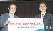 이경재 방송통신위원장(사진 왼쪽)은 23일 서울 강북구 수유동 한빛맹학교를 방문해 화면해설방송 수신기 6대를 전달했다. 화면해설방송은 시각장애인을 위해 TV 화면을 음성으로 설명해주는 것으로, 수신기가 있으면 더욱 편리하게 이용할 수 있다.}