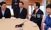 새누리당 박근혜 대선후보는 24일 비박(비박근혜) 경선주자들과 오찬회동을 갖고 본격적으로 ‘비박 끌어안기’에 나섰다. 이재오 의원에 이어 경선 룰 방식 갈등으로 경선에 불참했던 정몽준 의원도 이날 귀국함에 따라 조만간 이들과의 회동도 추진될 것으로 보인다. 박 후보는 이날 서울 여의도의 한 중식당에서 김문수 경기도지사와 김태호 의원, 임태희 전 대통령실장, 안상수 전 인천시장 등 경선주자 4명과 만나 “정권 재창출을 위해 힘이 돼주시고 도와주시기를 부탁드린다”고 요청했다. 박 후보는 “우리의 궁극적 목표는 국민행복”이라며 “정권 재창출을 해야 약속드린 것을 실천하고 국민이 바라는 바를 이뤄드릴 수 있으니까 도와주시면 감사하겠다”고 말했다. 비박 인사들도 화답했다. 박 후보가 “매일 뵙다가 며칠 만에 보니까 이산가족 재회하는 것 같다”고 인사를 하자 경선 기간 박 후보와 가장 날 선 대립각을 세웠던 김 지사는 “싸우면서 정든다는 말이 있지 않느냐”며 화기애애한 분위기를 만들었다. 김 지사는 회동 직후 ‘어떤 부분을 돕기로 했느냐’는 기자들의 질문에 “모든 면에서…”라며 “지사직으로 법에 어긋나지 않는 범위 내에서 도와줄 것은 다 도와드릴 것”이라고 말했다. 임 전 실장과 안 전 시장은 각각 남북관계와 가계부채 해결과 관련한 역할을 맡을 것으로 전해졌다. 김 의원은 “2040세대 유권자가 상당히 많고 중요하니 앞으로 박 후보가 더욱 바뀌는 모습을 보여주길 바란다”고 조언한 것으로 알려졌다. 박 후보도 회동이 끝난 뒤 “정권 재창출을 위해 모두 힘이 돼 주기로 했다”며 “정권 재창출에 도움이 되는 조언도 해줬다”고 말했다. 그러면서 이들이 선대위에서 역할을 할지에 대해서는 “의논을 드려서 도와줄 부분에 대해 말하기로 했다”고 밝혔다. 미국 방문을 마치고 귀국한 정 의원은 기자들과 만나 “새누리당이 주어진 역사적 소임을 다할 수 있도록 당원으로서, 그리고 전직 당 대표로서 제게 주어진 역할이 무엇인가를 생각해 보겠다”고 말했다. 고성호 기자 sungho@donga.com}