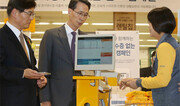 종이 영수증 발행에 따른 자원 낭비와 환경오염을 줄이고자 종이 영수증을 모바일 영수증으로 대체하는 국민 캠페인이 시작된다. 환경부는 신세계그룹 산하 13개 기업을 비롯해 한국기후환경네트워크, 소비자단체 등과 함께 ‘종이 영수증 없는 점포 선포 협약식’을 19일 서울 성동구 이마트 본사에서 열었다. 조경규 환경부 장관(왼쪽)과 이갑수 이마트 대표(가운데) 등 6개 참여 기업 관계자와 김재옥 한국기후환경네트워크 상임대표, 소비자단체 대표 등 300명이 참석했다. 이미지 기자 image@donga.com}
