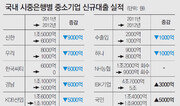 올 들어 7월까지 국내 은행 18곳 중 11곳이 중소기업 신규대출을 줄여 지난해 같은 기간보다 3조2000억 원이나 감소한 것으로 나타났다. 특히 정부 소유의 우리은행과 KDB산업은행마저 중소기업 신규대출을 수천억 원씩 줄였다. 경기 침체 장기화로 어려움을 겪는 중소기업에 ‘비 오는데 우산을 빼앗는’ 대출 행태를 보인 것이다. 13일 금융감독원이 최근 작성한 내부 보고서에 따르면 신한 국민 우리 하나 등 18개 은행이 올해 1∼7월 중소기업에 공급한 신규대출액은 11조9000억 원으로 지난해 같은 기간의 15조1000억 원보다 3조2000억 원(21.1%) 급감했다. 은행별 신규대출 감소액은 신한은행 9000억 원, 한국씨티은행과 경남은행 각 6000억 원, SC은행 4000억 원 순이었다. NH농협은행은 지난해 1조2000억 원에 이어 올해도 9000억 원의 중소기업 대출을 회수했다. 특히 정부가 대주주인 우리은행은 7000억 원, 산업은행은 5000억 원 신규대출이 감소했다. 경기 침체와 내수 위축으로 어려움을 겪는 중소기업을 위해 금융당국까지 나서 대출을 적극 독려했지만 사실상 국책은행이 오히려 정부 정책에 역행한 셈이다. 반면 국민은행은 이 기간 중소기업 대출을 1조4000억 원에서 1조9000억 원으로 5000억 원 늘렸고, IBK기업은행 역시 4조7000억 원에서 5조 원으로 3000억 원 증액했다. 은행들이 신규대출을 조이면서 올 들어 매출 부진에 시달리는 중소기업의 고통은 더 커지고 있다. IBK경제연구소가 3070개 중소기업을 대상으로 실시한 설문조사에 따르면 자금난을 겪고 있는 비율이 지난해 7월 28.4%에서 올 7월 30.2%로 높아졌다. 금융권에서는 올해 유럽 재정위기에 따른 경기 침체가 심화되면서 은행들이 대출 손실의 위험을 낮추려고 대기업에 비해 부실 가능성이 큰 중소기업 대출을 줄이는 것으로 보고 있다. 한 시중은행 관계자는 “지난해부터 가계부채 문제가 부각되면서 개인 여신에 대한 리스크까지 높아져 은행들은 이중고(二重苦)를 겪고 있다”고 분위기를 전했다. 또 은행들은 중소기업에 대한 신용대출을 줄이는 동시에 담보대출 비중은 늘리고 있다. 금감원에 따르면 은행권의 신용대출 비중은 2008년 말 59.6%에서 올 7월 말 54.3%로 줄어든 반면 담보대출 비중은 같은 기간 30.3%에서 32.4%로 늘어났다. 대기업보다 상대적으로 담보자산이 부족한 중소기업에는 대출문턱이 그만큼 높아질 수밖에 없다. 금융당국 관계자는 “중소기업들은 매출 감소로 신음하고 있지만 많은 은행이 대출이 부실화되더라도 손실을 거의 보지 않는 담보대출을 늘리는 손쉬운 장사를 하고 있다”고 비판했다. 한편 이날 권혁세 금감원장은 인천 남동공단을 찾아 중소기업인들의 애로사항을 들었다. 권 원장은 “중소기업 대출을 줄인 은행 11곳에 대출 확대를 독려하겠다”며 “담보능력은 낮으나 기술력을 갖춘 중소기업이 은행자금을 쉽게 이용할 수 있도록 동산 담보대출을 적극 확대하겠다”고 강조했다.김상운 기자 sukim@donga.com 황진영 기자 buddy@donga.com }