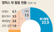대학생 A 씨는 주중에 수업을 듣고, 전공인 사회복지학 공부를 하고, 아르바이트를 한다. 그 대신 주말시간은 인근 사회복지관에서 어린이를 가르치는 봉사활동에 쓴다. 미리 사회복지사 일을 경험해보고, 캠퍼스 밖에서 취업하고 싶은 분야의 인맥을 만들기 위해서다. 올해 대학생 10명 중 4명은 A 씨처럼 ‘캠퍼스 밖 활동’을 경험한 것으로 나타났다. 캠퍼스 밖 활동은 아르바이트, 인턴십을 제외하고 보수가 없는(또는 교통비나 실비만 지급되는) 사회참여 활동을 뜻한다. 대학생이 공공·민간기관에서 봉사활동이나 서포터스 같은 캠퍼스 밖 활동에 참여한 횟수는 1인당 평균 2.17회였다. 학업이나 동아리 같은 ‘캠퍼스 안 활동’도 아니고 돈을 버는 아르바이트도 아니지만 취업을 위한 ‘캠퍼스 밖 활동’이 대학생의 중요한 일상으로 자리 잡았음을 보여준다. ○ 1인당 캠퍼스 밖 활동 2.17회 20대 연구소가 올해 1월부터 10월까지 진행된 대학생 모집공고를 전수 조사했더니 캠퍼스 밖 활동은 1464개로 집계됐다. 민간복지단체에서 368개(25.1%)를 운영해 가장 많았고 이어 정부·공공기관이 164개(11.2%), 교육·연구기관과 화장품·패션 회사가 109개(7.4%)로 뒤를 이었다. 이에 따라 대학생들의 캠퍼스 밖 활동도 봉사활동(33.9%) 비율이 가장 높았다. 다음으로 서포터스(26%), 기자단(15.2%) 순이었다. 반면 대학생들이 가장 선호하는 캠퍼스 밖 활동은 ‘해외탐방’(29.1%)이었다. 실제로 ‘해외탐방’에 참여한 경우는 3.6%에 그쳐 선호 활동과 경험에는 괴리가 있었다. 캠퍼스 밖 활동에 참여한 대학생의 절반 이상(52.9%)은 만족스럽다는 반응을 보였다. 대학생이 캠퍼스 밖 활동에 참여하는 이유는 △다양한 사람과 교류하고 싶어서(26.9%) △취업할 때 필요한 스펙을 쌓고 싶어서(24.1%) △개인 역량을 키우고 싶어서(18.9%) 순이었다. 즉 인맥과 스펙을 쌓기 위해 ‘캠퍼스 밖 활동’을 적극 활용하는 것. 본격적으로 진로 탐색을 할 수 있고 직무에 대한 경험을 쌓을 수 있다는 점에서 대학 생활에서 차지하는 비중이 점점 높아지고 있다고 연구소 측은 분석했다. 반면 캠퍼스 밖 활동에 참여하지 않는 이유로는 학업이 우선이기 때문(29.6%)이란 응답이 가장 많았다. 시간 부족(25.8%)과 능력 부족(10.2%)도 주요한 이유였다. ○ ‘유명 기업’ 아닌 ‘원하는 직무’에 지원해야 취업 전문가들은 캠퍼스 밖 활동이 개인의 역량을 키우는 데 실질적으로 도움이 되도록 하려면 프로그램을 잘 선택하는 것이 중요하다고 강조한다. 대기업이나 ‘∼챌린저’ ‘∼마케터’처럼 이름에 현혹되기 쉬운데 실제 자신이 맡게 될 업무가 무엇인지 미리 파악하는 것이 중요하다. 대학생을 모집하는 기업들이 홍보용으로 활용한다거나 체계적인 관리를 못하는 경우도 많기 때문이다. 신익태 대학내일 20대 연구소장은 “자신이 어떤 분야에서 경험을 쌓기를 원하는지를 먼저 정한 다음에 그러한 직무 경험을 제공할 수 있는 기업을 찾아야 한다”며 “기업명이나 프로그램명만 보고 지원하면 원하는 경험을 쌓지 못할 수도 있다”고 조언했다. 한편 대학생들은 캠퍼스 밖 활동에서 가장 필요한 능력에 대해 ‘열정과 노력하는 자세’(44.3%)를 꼽았다. 의사소통 능력(19%), 넓은 대인관계(11.1%), 콘텐츠 확산 능력(4.1%) 등과 같이 커뮤니케이션 능력이 중요하다고 생각한 비율은 34.2%였다. 우경임 기자 woohaha@donga.com}
