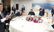 만찬주로 오른 문배주가 담긴 술잔이 자유롭게 오가던 27일 오후 8시 무렵, 김정은 북한 국무위원장은 조용히 만찬장 밖으로 나갔다. 판문점 남측 평화의집 3층에 마련된 만찬장을 나선 김 위원장은 별도의 장소에서 담배를 피웠다. 우리 측 관계자들이 이날 본 김 위원장의 유일한 흡연 장면이었다. 청와대 관계자는 “김 위원장이 애연가라고 들었지만 남북 정상회담이라는 상징성과, 남북 인사들이 많다는 점을 고려해 공개적인 흡연은 자제하는 모습이었다”고 전했다. ○ 잇따라 ‘원샷’한 김정은 당초 청와대는 정상회담을 준비하며 김 위원장의 흡연에도 신경을 썼다. 공개적인 시찰 자리에서 담배를 손에 든 모습을 보였을 정도로 김정은은 애연가로 알려져 있다. 청와대는 문재인 대통령과 김정은이 독대하는 도보다리 탁자에 물, 차와 함께 재떨이도 준비했다. 하지만 막상 김정은은 담배를 꺼내지 않았다. 한 청와대 참모는 “취재진이 없는 환담장에서도 김 위원장이 흡연하지 않았다”며 “아무래도 34세인 김 위원장이 자신보다 문 대통령(65)이 훨씬 연장자라는 점을 고려한 듯하다”고 전했다. 그 대신 만찬장에선 적잖은 술을 마셨다고 한다. 한 참석자는 “문배주의 알코올 도수가 40도 안팎으로 센 편인데 남측 관계자들이 헤드테이블에 있는 김 위원장을 찾아가 술을 권하면 흔쾌히 일어나 술잔을 채우고 ‘원샷’을 했다”고 전했다. 만찬 참석자들은 “김 위원장이 단 한번도 술을 거절하지 않았다”고 입을 모았다. 이날 만찬에는 우리 측에서 30명, 북측에서 24명이 참석했다. 김 위원장의 부인 리설주도 문 대통령의 부인 김정숙 여사와 술잔을 주고받았다. 두 여사가 이야기꽃을 피우자 김 여사 옆자리에 앉아 있던 문 대통령이 “이쪽에 와서 앉아서 이야기하시라”며 자리를 비워주기도 했다. 잠시 뒤에는 리설주 오른편에 앉아 있던 임종석 대통령비서실장 자리로 김 여사가 건너가 이야기를 이어갔다. 리설주는 김 여사에게 “저와 같이 여사님도 성악을 전공하셔서인지 마음속으로 가깝게 느껴진다. 우리 두 사람이 예술산업에 힘을 보탤 수 있을 거라 생각한다”고 말했다고 고민정 청와대 부대변인이 전했다. 또 리설주는 환담, 만찬자리에서 거리낌 없이 김 위원장을 ‘우리 남편’이라고 불렀다. 한 관계자는 “김 위원장을 지칭하며 ‘남편이’, ‘우리 남편이’라고 부르는데 전혀 어색함이 없었다. 일상적인 부부의 모습을 보는 것 같았다”고 전했다. 리설주의 시누이인 김여정 노동당 제1부부장도 문 대통령 내외에게 술을 권하고 건배를 했다.○ 북한 마술사, 미국 달러로 공연 평양냉면도 만찬의 큰 화제였다. “오늘 점심 때 한국의 평양냉면 집들이 인산인해를 이뤘다더라”는 고 부대변인의 소개에 참석자들이 일제히 폭소를 터뜨리기도 했다. 냉면은 물냉면과 비빔냉면 두 종류로 제공됐는데, 두 정상 내외는 모두 물냉면을 골랐다. 만찬에 참석했던 박용만 대한상공회의소 회장은 옥류관 냉면을 ‘만찬 음식의 꽃’으로 꼽으며 “생각보다 면발은 약간 질긴 편이었는데 육수가 일품이었다. 고명으로 얹은 세 가지 수육도 아주 부드럽고 담백했다”고 전했다. 북한에서 ‘요술’이라고 부르는 마술사의 공연도 인기였다. 카드 마술로 공연을 시작한 북측 마술사는 테이블을 누비며 우리 측 참석자의 지갑에서 한국 돈 5만 원권을 건네받은 뒤 이를 미국 100달러짜리 지폐로 바꾸는 마술을 선보여 큰 웃음과 박수를 받았다. 또 다른 참석자는 “마술사가 관객 호응을 유도하는 솜씨가 보통이 아니었다. 김영철 노동당 부위원장 등 수행단들도 보조사로 공연에 참여했다”고 말했다. 분위기가 무르익으면서 가수 조용필 씨와 현송월 북한 삼지연관현악단 단장이 즉석에서 조 씨의 히트곡인 ‘그 겨울의 찻집’을 불렀다. 자연스럽게 남북 참석자들은 서로 술잔을 주고받으며 테이블을 오갔다. 청와대 고위 관계자는 “나중엔 지정석도 없이 다들 이곳저곳을 옮겨가며 이야기를 나눴다. 일반적인 정상회담 만찬에서 볼 수 없는 장면인데, 통역이 필요 없기에 가능했던 것 같다”고 전했다. 한편 배석자 없이 두 정상 사이에 진행된 ‘도보다리 단독 회담’에 대해 청와대는 “긴 거리를 걷고, 언덕을 넘어가야 해서 북측에서 마지막까지 난색을 표했다. 하지만 회담이 임박해 김 위원장이 최종적으로 ‘하겠다’고 결정한 것 같다”고 설명했다. 또 오전 정상회담이 끝날 무렵 취재진에게 마무리 발언을 공개하자고 한 것도 김 위원장의 제안이었다고 한다. 정부 관계자는 “처음에 북측이 생중계에 주저했지만, 합의를 본 뒤에는 북측이 더 적극적으로 나섰다”고 전했다.한상준 alwaysj@donga.com·박성진 기자}