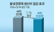 세계적인 농업 선진국인 이스라엘의 경쟁력 중 하나로 모샤브와 키부츠 등 농업 공동체가 꼽힌다. 여러 농가의 공동 경영을 통해 재배 농지를 대규모화함으로써 수출 경쟁력이 생긴 사례다. 한국에서도 파종부터 수확까지 여러 농가가 공동 작업을 하는 ‘들녘경영체’가 주목받고 있다. 30일 농림축산식품부에 따르면 들녘경영체를 만들어 공동 생산에 나설 경우 벼 생산비가 7.1% 줄어드는 것으로 나타났다. 전국 벼 생산 농가의 1000m²당 평균 생산비는 인건비를 포함해 44만323원. 공동체를 꾸려 공동 종묘(모내기용 모 키우기)와 이앙, 수확을 할 경우 생산비가 40만9162원으로 줄어들었다. 2009년 시작된 한국의 들녘경영체는 올해까지 총 214곳이 선정됐다. 50만 m² 이상 집단화한 들녘이면 공동체를 만들어 신청할 수 있다. 지금은 주로 벼농사 위주로 지원된다. 대표적인 곳이 전북 익산시에 있는 ‘한그루영농조합’. 이곳은 지난해 총 320만 m²의 농지를 26개 농가가 함께 일궜다. 주로 30, 40대 젊은 영농인들이 참여했다. 밀과 보리 이모작 지역도 2013년 전체 경작면적 대비 50%까지 늘었다. 박해원 한그루영농조합 대표(42)는 “지역 단위의 협업 영농 구조를 만들지 않으면 시장 개방 시대에 살아남을 수 없다”고 말했다. 충남 아산시의 ‘둔포영농조합’은 공동 재배한 쌀을 고급 브랜드로 출시한 경우다. 이곳은 170여 농가가 쌀 품종을 통일하고 품질 관리와 브랜드 마케팅에까지 함께 나섰다. 그렇게 만들어진 브랜드가 ‘아산맑은쌀’이다. 까다로운 기준을 통과한 쌀이라 일반 브랜드 쌀보다 10% 이상 높은 가격에 판매되고 있다. 농식품부 관계자는 “현재 214곳이 지정된 들녘경영체를 2020년까지 500개 이상으로 늘려 농업 분야의 공동 경영을 확산시킬 예정”이라고 말했다. 박재명 기자 jmpark@donga.com}
