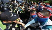 경찰이 5월 서울 도심 때 경찰관을 폭행한 혐의로 전국민주노동조합총연맹(민노총) 금속노조 조합원 3명에 대해 구속영장을 신청했다. 서울 종로경찰서는 민노총 금속노조 소속 현대중공업 지부장 박모 씨 등 3명에 대해 특수공무집행방해 등의 혐의로 구속영장을 신청했다고 24일 밝혔다. 경찰에 따르면 이들은 5월 22일 종로구 계동 현대중공업 서울사무소 진입을 시도하며 출입문을 부수고 현장을 지키던 경찰관들을 마구 폭행한 혐의를 받고 있다. 당시 금속노조 소속 현대중공업 노조와 대우조선해양 노조 조합원 1000여 명은 ‘현대중공업 물적분할·대우조선 매각저지 결의대회’를 열었는데 일부 조합원들이 현대중공업 서울사무소 진입을 시도하는 과정에서 이를 말리는 경찰관들을 폭행했다. 경찰관 36명이 다쳤고 일부 경찰은 손목과 치아가 부러지는 부상을 당했다.구특교 기자 kootg@donga.com}