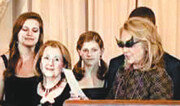 힐러리 클린턴 미국 국무장관(오른쪽)이 21일 워싱턴 국무부 청사에서 열린 마이크 해머 공보담당 차관보 선서식에서 화려한 주얼리 장식의 선글라스를 선보였다. 클린턴 장관은 “마이크가 보라색을 좋아한다는데 보라색 옷이 없어 입고 나오지 못해 미안하다. 그 대신 비장의 무기를 준비했다”며 보라색과 초록색으로 장식된 날개 모양의 선글라스를 꺼내 쓰고 선서식을 진행했다. 참석자들은 웃음을 터뜨렸다. 허핑턴포스트 홈페이지}