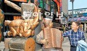 옷가게가 즐비하고 사람에 부딪히며 걷는 번화한 거리. 주말이면 하루 최대 50만 명이 왔다 갔다 하지만 아무도 머물고 싶어 하지 않는 거리. 1985년 생긴 지하철 노원역 주변 골목은 서울 어디서나 볼 수 있는 흔한 거리였다. 노원역 2번 출구와 이어진 노원 문화의 거리. 이 거리가 달라졌다. 노원구는 4년 전부터 53억 원을 들여 거리를 새로 단장했다. 1.8km 거리 바닥에 깔린 화강석에는 그림을 새겨 넣었다. 화강석 의자 80개를 군데군데 설치했다. 앉으려고 보니 시구가 한 구절씩 적혀 있다. 프랑스 파리의 개선문을 본떠 만든 입구를 지나면 피에로와 서커스단을 형상화한 3m 높이의 ‘플레이(PLAY)’라는 조각가 김도영 씨의 작품이 반갑게 맞아준다. 왼쪽 방향에는 105m² 규모의 야외무대가 눈에 띈다. 토요일이 되면 거리 전체가 들썩이는 무대가 된다. 35년간 노원구에서 살았다는 개그맨 김병조 씨(62)와 25일 노원 문화의 거리를 걸어봤다. ○ 길거리 공연 메카로 성장 노원 문화의 거리에는 2007년부터 토요일마다 ‘거리 아트 페스티벌’이 열린다. 가수 남진 씨, 팝페라 가수 임태경 씨, 김덕수 사물놀이패, 국악인 오정해 씨 등 쟁쟁한 출연진이 무대에 올랐다. 비보이 마술 록밴드 벨리댄스까지 장르를 가리지 않고 공연이 열린다. 가로등에 걸린 스피커에서 음악이 흐르고, 무지갯빛 조명이 춤을 춘다. 변변한 공연장이 한 곳도 없는 서울 동북부에서 ‘공연 메카’의 역할을 톡톡히 한다. 김 씨는 “대형 공연장이 일방적으로 보여주는 ‘쇼’라면 길거리 무대는 배우와 관객이 함께 호흡하는 소통”이라고 말했다. 그의 길거리 공연 예찬론이 이어졌다. 몸집만 키운 공연장보다 오히려 공연 문화를 활성화시킬 수 있다는 것이다. “대통령 모시고 행사도 했고 세종문화회관에서 공연도 해봤습니다. 대형 무대에 서면 객석을 내려다볼 수 없어요. 그러나 길거리 공연은 관객과 호흡을 주고받는 쾌감이 있습니다. 무대와 객석의 구분이 없고 남녀노소가 함께 어울리고 누구나 주인공이 될 수 있어요. 진짜 공연이죠.”○ 남녀노소 모두 환영받는 거리 야외무대 앞에 서서 거리를 둘러보니 상권도 독특했다. 유명 커피숍이 줄줄이 들어선 반면 턴테이블에서 흘러나오는 기계음 섞인 1970, 80년대 노래를 들을 수 있는 음악주점도 있다. 여고생들이 찾을 법한 떡볶이집이 옹기종기 모여 있는 한편 중년이 찾을 만한 막걸리집들도 한 골목을 차지했다. 김 씨는 “이래서 노원구를 떠날 수가 없다. 서울에 옛것이 남아 있는 지역이 거의 없지만 이곳은 다르다”고 말했다. 1975년 데뷔한 이후 하루에 한 번씩은 무대에 섰다. 단순히 계산하면 1만3505번이다. 그런데도 아직 떨리는 무대가 있단다. 바로 뮤지컬 배우로 활동하는 아들의 무대다. “박수 소리가 크면 얼마나 고생했을까 싶어 안쓰럽고 객석 반응이 별로면 얼마나 속상할까 싶어 안타깝습니다. 아들 공연은 늘 마음 졸이면서 봅니다.” 김 씨는 조선대에서 한학을 가르치고 있다. 라디오 프로그램도 진행한다. 평생 사람들 앞에 서는 것이 일이다. ‘무대의 달인’인 그에게 길거리 무대에 서는 젊은이에게 해주고 싶은 말이 있는지 물었다. “나가 놀아라, 다만 사람이 되어라”란 유행어로 답한다. “눈치 보고 평에 휘둘리고 그럴 필요 없어요. 연습보다 공연을 하면 실력이 두 배로 늘어요. 어느 순간 무대를 즐기는 자신을 보게 될 거예요.”우경임 기자 woohaha@donga.com}