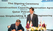 한국 조선 3사가 23조 원이 넘는 카타르 대규모 액화천연가스(LNG)선 프로젝트를 따냈다. 현대중공업, 대우조선, 삼성중공업 등 국내 업체들이 나란히 신종 코로나바이러스감염증(코로나19) 사태로 인한 수주 가뭄 속에 쾌거를 기록하게 됐다. 카타르 국영석유사인 카타르 페트롤리엄(QP)은 1일(현지시간) 한국의 현대중공업, 삼성중공업, 대우조선과 LNG선 관련협약을 맺었다고 밝혔다. QP가 2027년까지 이들 조선 3사로부터 LNG선 건조 공간 상당 부분을 확보하는 내용이다. 규모는 700억 리얄(약 23조6000억 원) 수준으로 알려졌다. 다만 QP 및 각 업체 들은 업체별 할당된 수주량은 밝히지 않고 있다. 이번 LNG선 프로젝트와 같은 대규모 사업에선 정식 발주 전에 선박 건조를 위한 공간(슬롯)을 확보하는 계약을 먼저 맺는다. QP 측은 “LNG선 수주 역사상 최대 규모”라며 “2027년까지 LNG선 100척 이상이 필요하다. 현재까지 세계 LNG선 건조 가능 대수의 약 60%를 확보한 상황”이라고 설명했다. 조선업계 관계자는 “이번 협약은 정식 수주 전 단계라 계약 조건, 선박 대수 등은 향후 달라질 수 있다”면서도 “대규모 사업에서 한국 조선산업이 이룬 쾌거”라고 평했다. 세계 최대 LNG 생산국인 카타르는 LNG 연간 생산량을 기존 7700만t에서 2027년까지 1억2천600만t으로 확대하기로 하고 증설을 추진하고 있다. LNG 생산량이 늘어나면 이를 운반할 대규모 운반선이 필요하다. 그간 세계적인 기술력을 자랑하는 한국 업체에 기회가 될 것으로 예상돼 왔지만 코로나19 사태와 유가하락 등으로 사업이 지연되는 것 아니냐는 우려도 적지 않았다. 하지만 올해 4월 QP가 중국선박공업(CSSC)과 먼저 협약을 맺어 LNG선 수주전의 시작을 알렸다. 당시 수주 규모는 200억 위안(약 3조5000억 원)으로 알려졌다. 한편 이날 화상으로 열린 협약식에는 사드 알 카아비 카타르 에너지장관 겸 QP 대표와 성윤모 산업통상자원부 장관, 이성근 대우조선 사장, 가삼현 한국조선해양 사장, 남준우 삼성중공업 사장 등이 참석했다.김도형 기자 dodo@donga.com}