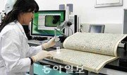 《“조선왕조실록 말인데요, 좀 와서 봐주셔야겠어요.” 1998년 가을, 서울대 규장각으로부터 걸려온 한 통의 전화. 그것이 시작이었다. 퇴근 후 서울대 규장각 서고를 찾은 이규식 문화재청 연구사(현 국립문화재연구소 복원기술연구실장)는 눈앞에 벌어진 광경에 할 말을 잃었다. 세계기록문화유산인 조선왕조실록이 ‘줄줄 녹아내리고’ 있었다.》“그때의 충격을 잊을 수가 없어요. 그 후 13년째 여기 매달려 있죠.” 이 실장은 태조∼명종대 실록 ‘밀랍본’ 복원사업 총괄담당자다. “왜 오래 걸리느냐”는 질문에 이 실장은 겸연쩍게 웃으며 “하나(밀랍)는 없애고, 하나(종이)는 살리는 모순을 동시에 수행할 방법을 찾아야 하기 때문”이라고 답했다. 한지에 벌집의 성분 ‘황랍’을 입혀 만든 밀랍본은 세계에서 유례를 찾기 힘든 희귀본이다. 1998년 문화재연구소는 인천 강화군 정족산사고에서 서울대 규장각으로 옮겨진 실록 1299권에 대해 대대적인 조사를 벌여 131권의 밀랍본이 심각한 손상 상태임을 밝혀냈다. 본래 보존을 위해 발랐던 천연밀랍 성분이 녹아 한지가 찢어지고 색이 바랬다. 딱딱하게 굳은 부분은 곰팡이마저 슬어 건드리면 당장에 바스러질 지경이었다. 조사를 거쳐 2006년 본격 복원기술 개발을 시작했다. 복원사업의 핵심은 한지에서 밀랍을 제거하고 흩어진 종이들을 접합해 원상태로 돌리는 것. 문화재연구소는 강원대 제지공학과 조병묵 교수팀과 함께 2008년 실록 원지와 밀랍, 먹, 아교 등 재료 분석을 마치고 곧바로 밀랍을 제거하는 탈랍(脫蠟)실험에 들어갔다. 연구진이 개발한 탈랍법은 세 가지. 클로로포름에 종이를 넣고 밀랍을 녹이는 ‘용매 탈랍법’, 열과 압력을 가해 밀랍을 빼내는 ‘가온·가압 탈랍법’, 액체 상태의 이산화탄소에 밀랍을 녹여내는 ‘초임계 유체 탈랍법’이다. 문제는 종이였다. 밀랍을 제거하는 것은 어렵지 않았지만, 실험 과정에서 종이도 상하기 일쑤였다. “용매인 클로로포름에 종이를 넣으면 밀랍이 녹지만 종이도 바스러집니다. 열과 압력을 가할 때도 마찬가지죠.” 조 교수가 설명했다. 밀랍본 제작과정이 불분명한 점도 복원을 어렵게 하고 있다. “실록 관리기록인 ‘형기안’이라는 고서에는 ‘어느 지방에서 한지 몇 묶음이 왔다’ ‘어디 콩을 썼다’ 정도의 기초적인 정보만 적혀 있어요. 밀랍이 어떤 종이에 어떤 방식으로 뿌려졌는지 알아야 안전한 방식으로 떼어낼 수 있는데 말이죠.” 연구진은 첨단기기를 동원해 밀랍본 조각에서 나오는 미세가스를 분석하고, 실록 재현품에 수백 년 분량의 열과 압력을 가한 뒤 원본과 비교해 보는 방법으로 원래 제작기법을 하나하나 역추적하고 있다. 그나마 실험에 쓸 수 있는 원본은 새끼손톱 절반만 한 조각. 이마저도 규장각 측이 몇 년에 한 번씩만 제공할 뿐이다. “열악하죠?” 이 실장이 멋쩍게 웃었다. 다른 나라 고문서 중에도 초(醋) 등 인공 파라핀을 바른 밀랍본이 있지만, 한지에 천연 파라핀을 입힌 밀랍본은 세계에서 단 하나뿐이라는 게 연구진 설명이다. 차용하거나 참고할 만한 탈랍기술이 없다는 뜻. 그야말로 ‘전 세계 유례없는 단 하나의 기술’을 개발하고 있는 셈이다. 이 때문에 남은 과제는 많다. 연구진은 일단 탈랍기술을 원본에 적용할 수 있는 수준으로 가다듬고, 원지의 강도를 보강하기 위한 연구를 계속할 예정이다. 실록의 현 상태를 유지하는 것도 큰 숙제다. 이 실장은 “정기점검을 통해 규장각 서고 항온·항습기능을 강화하고 오염물질을 정화하는 불활성가스를 개발하는 일을 별도로 계획 중이다. 2014년까지 작업을 완료할 것”이라고 말했다.이미지 기자 image@donga.com}