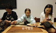 한 땀 한 땀 갓을 짜는 장인의 얼굴에 깊은 주름이 엿보였다. 갓을 얹어 돌리는 단단한 나무 ‘골걸이’ 표면에도 깊은 주름이 졌다. “골걸이에 갓 모자 모양인 ‘일골’을 얹고 돌려가며 짜는데, 수십 년 돌리다 보니 일골 모서리 따라 홈이 파인 거쥬.” 85년간 총모자만 만들어온 중요무형문화재 제4호 갓일(갓 만드는 일) 명예보유자 김인 씨(91)가 반들반들해진 골걸이 나무 표면을 쓰다듬으며 말했다. 짧게는 50년, 길게는 80년 넘게 전통공예품을 만들어온 중요무형문화재 명예보유자들의 작품이 한자리에 모였다. 한국문화재보호재단은 12일부터 26일까지 서울 강남구 삼성동 중요무형문화재전수회관에서 ‘2011 무형문화재초대전-평생 외길: 명예로운 그 이름’ 전시회를 연다. 총 24명에 이르는 명예보유자 가운데 공예부문 명예보유자 7명을 초청했다. 갓일 명예보유자 김인 씨, 한산모시짜기 문정옥 씨, 소목장 설석철 씨, 장도장 박용기 씨, 망건장 이수여 씨, 탕건장 김공춘 씨, 한지장 류행영 씨가 자신들의 작품과 평생 함께한 제작도구들을 선보였다. 이날 전시는 명예보유자들의 작품뿐만 아니라 대부분 명예보유자의 가족이나 친지인 2, 3대 전승자들의 작품도 함께 전시해 ‘가족전’ 형태를 띠었다. 12일 개막식에 대표로 참석한 갓일 명예보유자 김 씨는 ‘핸드프린팅’ 행사를 마치고 함께 온 딸 강순자 씨(65·갓일 기능보유자), 외손녀 양윤희 씨(36·갓일 전수장학생)와 총모자 짜는 모습을 시연했다. 김 씨는 현존 무형문화재 가운데 탕건장 명예보유자 김공춘 씨(93)에 이어 두 번째로 나이가 많다. 걷는 것은 물론이고 보는 것조차 쉽지 않을 나이지만, 말총을 고르고 다듬어내는 김 씨의 손길에는 한 치의 망설임도 없었다. 김 씨가 외할머니와 어머니에게서 총모자 짜는 일을 배운 것은 일곱 살 때부터. “골걸이가 너무 높아 베개를 깔고 앉아 일을 했쥬. 그때만 해도 10개 맨들어 놓으민 부모가 25전에 팔아서 모았다가 송아지도 사오고 사탕도 사오고… 도포 채려 입고 갓집에 갓 넣고 아끼는 양반들이 많았으니까.” 김 씨가 태어난 제주도 도두동은 말이 많이 나는 제주도에서도 갓 장인이 많기로 유명한 동네였다. 여자들은 낮에는 밭일이나 해녀 일을 하고 밤에는 초롱불 곁에 둘러앉아 새벽까지 갓을 짰다. 갓은 매우 섬세한 공예품이라 모자 부분을 짜는 총모자장과 차양 부분을 짜는 양태장, 모자와 차양 부분을 잇는 입자장 등 장인 3명을 따로 뒀다. 총모자만 짜는 데도 며칠이 걸렸다. “보통 하나 맹그는 데 사나흘이 걸려.” 김 씨가 말했다. 그러다 보니 이수하려는 사람이 자꾸 줄었다. 갓 수요는 급격히 떨어지는데 일까지 고되니 기능을 이수하려고 제 발로 찾아온 사람들도 1년을 버티지 못하고 떠났다. “국가가 돈까지 주고 내가 밥까지 해 맥이면서 가르쳐준 대도 안 와.” 최근에도 외손녀 양 씨를 포함한 이수자 4명 가운데 2명이 다른 길을 찾아 나갔다. “중요한 전통기술인데 이렇게 놔둘 수는 없어 저와 제 딸이 나섰어요.” 김 씨의 딸 강 씨가 말했다. 강 씨는 서른한 살이라는 늦은 나이에 입문해 어머니에 이어 2대 기능보유자가 됐다. 생업을 접는 일이 쉽지 않았지만, 어느덧 의무감으로 시작한 갓일은 사명이 됐다. 강 씨의 권유에 못 이겨 5년간 전수장학생 과정을 다닌 외손녀 양 씨도 직장에서 일하는 틈틈이 갓일을 배워나가고 있다. “작업을 오래 하다 보면 눈과 허리가 많이 아프고 장인들 가운데는 망막이 찢어진 분들도 있어요. 하지만 우리 전통기술을 이어가고 있다는 자부심이 커요.” 양 씨가 말했다. 김 씨는 그런 외손녀와 딸이 자랑스럽다. “고맙죠. 이거 꼭 이어나가야 하는 기술이거든. 내 평생을 담아 이어왔는데, 내가 죽어서도 이 일을 이어서 해줄 사람들이 생긴 게 얼마나 다행인지.”이미지 기자 image@donga.com}