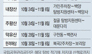 가을정취를 느끼면서 나들이하는 기분으로 걸을 수 있는 국립공원 단풍 산책로가 선정됐다. 국립공원관리공단이 9일 발표한 '걷기 좋은 국립공원 단풍길 10선'은 경사가 완만한 산책길이다. 10대 단풍 산책로는 △설악산(설악동 탐방지원센터~비선대) △속리산(법주사~세심정) △지리산(직전마을~삼홍소) △월악산 (만수계곡 자연관찰로) △치악산(구룡사~세렴폭포) △내장산(가인주차장~백양 탐방지원센터~백양사) △덕유산(구천동~백련사) △북한산(우이동 탐방지원센터~교현리) △한려해상(복곡2주차장~보리암) △주왕산(절골탐방지원센터~대문다리) 구간이다. 국립공원관리공단 관계자는 "굳이 가파른 정상 탐방로가 아니더라도 국립공원을 즐기는 방법은 여러가지"라며 "단풍색이 고운 이들 저지대 구간은 편안히 걸을 수 있어 오히려 더 여유롭게 가을정취를 느낄 수 있을 것"이라고 말했다. 전국 국립공원 중 설악산에서 지난달 말부터 가장 먼저 단풍이 시작했다. 단풍은 이달 하순 남쪽지방인 내장산, 무등산국립공원으로 내려가겠다. 첫 단풍은 산 정상에서 확인했을 때 20%가량 물들었을 때를 의미한다. 산 전체 면적 가운데 80% 물들었을 시점이 절정이라고 표현한다. 보통 첫 단풍에서 2주 정도 지난 시점에서 단풍이 절정에 이른다. 이에 따라 설악산과 치악산 등 강원지역은 10월 18일경부터 절정에 이른 단풍색을 보이겠다. 단풍은 설악산을 시작으로 보통 하루에 20~25㎞의 속도로 차츰 남쪽으로 내려온다. 이를 시속으로 환산하면 약 0.9km(0.83~1.04㎞)인데 거북이(시속 0.4~0.8㎞ 수준)를 간신히 따돌리는 수준이다. 느린 걸음이지만 가을은 부지런히 달려오고 있어 월악산과 속리산 등 중부지방도 10월 26일경, 내장산과 무등산 등 남부지방은 11월 6일쯤 단풍이 절정을 나타내겠다.임현석 기자 lhs@donga.com}