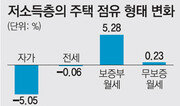경기침체와 전세금의 오름세가 장기화되면서 저소득층의 월세거주 비율이 큰 폭으로 늘어난 것으로 나타났다. 15일 부동산정보업체 부동산써브가 2008∼2010년 국토해양부의 ‘전국 소득계층별(1∼10분위) 주택 점유형태’를 분석한 결과, 저소득층의 자가비율은 최근 3년간 ―5.05%, 전세거주는 ―0.06%로 각각 하락했다. 반면 주거불안정성이 높은 보증부 월세에 거주하는 저소득층은 5.28% 늘었다. 같은 기간 고소득층은 자가와 전세비율이 각각 0.14%, 0.96% 늘었고, 보증부 월세는 0.67% 줄어 대조를 보였다. 무보증 순수 월세 역시 고소득층이나 중소득층보다 저소득층의 증가폭이 컸다. 고소득층과 중소득층은 각각 0.03%, 0.08% 증가에 그쳤지만 저소득층은 0.23% 늘었다. 지역별로는 수도권에서 소득계층별 격차가 두드러졌다. 보증부 월세와 무보증 월세에 거주하는 저소득층이 각각 5.4% 1.39% 늘어 증가폭이 전국에서 가장 컸다. 박선희 기자 teller@donga.com}