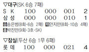 롯데가 화끈한 타력을 앞세워 6연승을 달렸다. 롯데의 6연승은 지난해 8월 17∼22일 이후 약 1년 만이다. 롯데는 4일 한화와의 대전 방문경기에서 9-1로 승리를 거두고 44승(42패 3무)째를 올렸다. 롯데는 7월 한 달간 19경기에서 팀 타율 0.296으로 8개 팀 중 1위를 했다. 같은 기간 평균 자책은 4.12로 5위였지만 방망이를 앞세워 13승 6패의 상승세를 탔다. 롯데 타선은 이날도 물오른 방망이로 14안타를 터뜨리며 완승을 이끌었다. 7월 한 달간 타율(0.423)과 장타력(0.635), 출루율(0.516)에서 모두 팀 내 1위를 한 롯데 9번 타자 문규현은 4타수 2안타로 물오른 타격감을 이어갔다. 롯데 선발 송승준은 6과 3분의 1이닝을 1실점으로 막고 8승(7패)째를 기록했다. 롯데는 4위 싸움을 벌이고 있는 LG와의 승차를 1.5경기로 벌렸다. 선두 삼성은 선발 윤성환의 호투를 앞세워 넥센을 2-0으로 꺾고 3연승했다. 윤성환은 7이닝 동안 삼진 7개를 잡으면서 안타 3개만 내주고 무실점으로 넥센 타선을 잠재웠다. 5연승을 달리며 8승(4패)째를 거둔 윤성환은 박현준(LG)과 장원준(롯데)에 이어 올 시즌 세 번째로 전 구단 상대 승리투수가 됐다. 삼성 타선은 상대 선발 나이트의 호투에 막혀 3안타로 부진했지만 7회 볼넷 3개와 1안타를 묶어 뽑은 2점으로 승리를 챙겼다. 9회 등판한 구원 선두 오승환은 안타 2개를 맞았지만 실점 없이 경기를 마무리해 32세이브째를 올렸다. 삼성을 1.5경기 차로 쫓고 있는 2위 KIA는 4년 만에 선발승을 거둔 김희걸의 빼어난 투구를 앞세워 두산에 2-1로 승리했다. 5이닝을 3안타 무실점으로 막고 시즌 첫 승을 신고한 김희걸은 2007년 7월 12일 삼성전 이후 4년 만에 선발승을 맛봤다. SK는 최동수의 만루 홈런을 포함해 장단 12안타로 LG 마운드를 두들겨 9-1로 이겼다. LG는 43승 44패가 돼 승률이 5할 아래로 떨어졌다.이종석 기자 wing@donga.com }