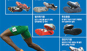 세계적인 수준의 엘리트 선수들이 사용하는 경기용품을 만드는 스포츠 용품 회사들은 조금이라도 더 가벼운 제품을 만들려는 경량화에 많은 개발비를 사용한다. 초 단위, cm 단위로 승부가 갈리는 육상선수들이 사용하는 용품이기 때문이다.‘번개’ 우사인 볼트(자메이카)가 2009년 베를린 세계육상선수권대회 남자 100m와 200m에서 세계기록을 세울 때 신었던 신발은 한 짝 무게가 204g이다. 일반인이 신는 운동화 절반 정도의 무게다. 대구 세계육상선수권대회 100m에서 볼트와 경쟁할 아사파 파월(자메이카)이 신었던 신발 한 짝 무게는 186g으로 더 가볍다. 1마일(약 1.6km)을 달릴 때 신발의 무게가 1온스(28.35g) 더 무거우면 전체적으로 55파운드(24.95kg)의 무게를 더 부담하는 것과 같다는 게 스포츠용품 회사들이 내놓은 분석이다.가벼운 게 최고라면 그냥 맨발로 뛰는 게 더 나은 것은 아닐까. 하지만 육상선수들이 신는 신발에는 발에다 날개를 달아주는 과학이 담겨 있다. 선수들은 종목의 특성에 맞는 ‘과학의 날개’를 얻는 대신 약간의 무게를 부담하는 것이다.100m와 200m 같은 단거리 선수들이 신는 신발의 밑바닥은 어떨까. 발이 편해야 하니까 푹신푹신한 재질일까. 단거리용 신발의 밑바닥은 아주 딱딱하다. 일반인이 신고 뛴다면 발바닥이 아플 정도다.왜 그럴까. 일반 러닝화나 마라톤화처럼 밑바닥이 무르면 지면과 붙어 있는 시간이 길어져 불리하다. 단거리용 신발은 지면에 닿자마자 튕길 정도로 단단한 플라스틱 소재로 돼 있다. 반면 중장거리 선수들은 이런 신발이 접지 시간을 줄이는 효과는 있지만 발바닥 통증으로 인한 손실이 더 커 신지 않는다. 중장거리용 신발 뒷부분에는 발의 피로를 줄이기 위해 쿠션 처리가 돼 있다.흔히 ‘징’으로 불리는 신발 바닥에 박혀 있는 스터드의 위치가 다른 것도 나름의 이유가 있다. 단거리와 멀리뛰기용 신발에는 스터드가 앞부분에만 있다. 주로 앞부분만을 이용해 순간 스피드로 승부를 내기 때문이다. 2000년 시드니 올림픽 여자 100m, 200m 우승자인 매리언 존스(미국)는 뒤꿈치가 바닥에 닿지 않는 주법 때문에 뒤꿈치를 감싸는 부분이 아예 없는 슬리퍼 모양의 신발을 신기도 했다. 높이뛰기 선수들의 신발에는 스터드가 앞뒤에 다 박혀 있다. 힘껏 달려오던 직선운동을 바를 넘기 위한 수직운동으로 손실 없이 전환하려면 점프 직전 내딛는 발이 지면에 제대로 고정돼 있어야 하기 때문이다. 짝짝이 신발도 있다. 원운동을 직선운동으로 바꿔야 하는 포환이나 원반, 해머던지기 등 투척 경기용 신발은 좌우 밑바닥 모양이 다르다. 원운동의 축이 되는 쪽 발의 밑바닥은 회전할 때 저항을 줄이기 위해 무늬를 거의 넣지 않는다. 이에 비해 원운동에 가속을 가하는 쪽 발은 접지력을 키우기 위해 요철 모양으로 한다. 창던지기용 신발의 한 짝은 부츠 모양이다. 창을 던지기 직전에 온몸의 힘을 실어 내딛는 쪽 발에는 발목까지 감싸는 ‘하이컷(high cut)’이 있다. 창던지기 역시 던진 직후 몸 전체를 붙들어 줄 힘이 필요해 밑바닥 앞뒤에 스터드가 다 박혀 있다.27일 개막하는 대구 세계육상선수권 때 종목별 세계 정상급 선수들의 신발을 유심히 살펴보는 것도 관전의 재미를 더할 수 있는 요소다. 이종석 기자 wing@donga.com}
