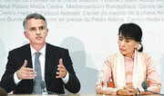유럽 5개국 순방에 나선 미얀마의 민주화 운동 지도자 아웅산 수치 여사(66)가 14일 첫 방문지인 스위스에서 기자회견 도중 탈진해 보좌관의 부축을 받으며 회견장을 떠났다. 이날 디디에 부르크할터 스위스 외교장관과 함께 기자들과 만나 웃음 띤 표정으로 앉아서 이야기를 하려던 수치 여사는 갑자기 얼굴이 창백해지며 “4시간 반 시차에 적응하지 못해 완전히 기진맥진한 상태”라고 말했다. 이어 책상 아래로 허리를 숙여 달려온 보좌관과 잠깐 이야기를 나눈 그는 기자회견을 중단했다. 보좌관의 부축을 받으며 회견장을 떠난 수치 여사는 이날 저녁에 예정된 만찬도 취소했다. 하지만 수치 여사는 15일 오전 스위스 연방의회를 방문하는 등 예정된 일정을 다시 시작했다. 수치 여사는 3월에도 총선 유세 중 탈진과 구토증세를 보여 3일 동안 집에서 쉬었다. 수치 여사는 14일부터 2주간의 일정으로 스위스 아일랜드 프랑스 영국 노르웨이를 방문한다. 그가 유럽을 찾은 것은 24년 만이다.주성하 기자 zsh75@donga.com}