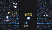 명왕성의 다섯 번째 위성이 발견됐다. 12일 외신에 따르면 미국 과학자들은 미 항공우주국(NASA)의 허블 우주망원경을 이용해 명왕성에서 9만3000여 km 거리의 둘레를 도는 지름 10∼24km의 위성을 발견했다. 너무 작은 데다 둥근 모양이 아닌 삐죽삐죽한 형태를 갖고 있는 것으로 추정돼 반사되는 빛만으로는 현재 정확한 크기를 추정하는 데 어려움이 있다. 과학자들은 새로 발견한 위성에 P5라는 이름을 달았다. 명왕성의 가장 큰 위성인 카론은 반지름이 603∼606km로 1978년에 발견됐다. 이어 2006년 허블 망원경으로 두 개의 작은 위성 닉스와 히드라를 발견했다. 지난해 발견된 네 번째 위성은 P4로 명명됐다. 명왕성에 가장 가까운 위성은 카론이며 이어 P5, 닉스, P4, 히드라 순으로 회전궤도가 자리 잡고 있다. 과학자들은 반지름이 달(1738km)보다 작은 1151km에 불과하고 질량도 달의 6분의 1밖에 안 되는 명왕성이 이처럼 많은 위성을 거느릴 수 있다는 점에 놀라움을 표시했다. 또 과학자들은 “명왕성의 모든 위성은 명왕성이 수십억 년 전 다른 큰 천체와 충돌할 때 형성됐을 가능성이 있다”고 말했다. P5는 이러한 명왕성의 형성과 진화 이론을 설명해줄 새로운 단서가 될 수 있을 것으로 보인다. 1930년에 발견된 명왕성은 태양계의 9번째 행성으로 많은 연구의 대상이었지만 2006년 8월 국제천문연맹(IAU)이 행성분류법을 바꾸면서 왜소행성으로 격하됐다.주성하 기자 zsh75@donga.com}