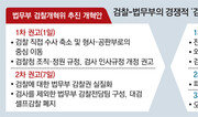 “국민의 시각에서 법무부와 검찰의 현재를 살펴보는 것이 옳다. 법무부와 검찰은 그 조직 자체 또는 법조 카르텔을 위해 존재해서는 안 되기 때문이다.”(조국 법무부 장관, 법무부 청사 출근길) “국민의 시각으로 패러다임을 전환하자. 검찰권 행사방식, 수사 관행, 내부 문화를 과감하고 능동적으로 개혁해 나가자.”(윤석열 검찰총장, 대검찰청 간부회의) 조 장관과 윤 총장은 7일 각각 ‘국민의 시각’을 강조하며 검찰 개혁에 대한 의지를 다졌다. 그러나 조 장관은 검찰을 ‘법조 카르텔’로 지칭하며 외부 개혁이 필요하다는 입장을, 윤 총장은 ‘능동적 개혁’을 통한 내부 개혁에 무게중심을 뒀다. 법조계에선 “문재인 대통령의 검찰 개혁 지시와 검찰의 조 장관 일가 수사로 법무부와 대검이 검찰 개혁을 놓고 주도권 경쟁을 벌이는 것 같다”는 분석이 나온다.○ 직접 수사 이어 ‘감찰권’까지 개혁 대상으로 조 장관의 검찰 개혁은 지난달 30일 발족한 법무부의 제2기 법무·검찰 개혁위원회(개혁위)가 주도하고 있다. 개혁위는 7일 법무부의 검찰에 대한 감찰 권한을 ‘2차 감찰’로 축소하고 있는 법무부 감찰규정 등을 즉시 삭제하고, 법무부 내에 감찰전담팀을 구성하라고 권고했다. 법무부의 검찰에 대한 감찰권을 실질화하고, 검찰의 셀프 감찰을 폐지하라는 것이다. 또 개혁위는 △비대해진 검찰 조직의 정상화 및 기능 전환 △검찰 조직의 민주적 통제와 내부 투명성 확보 △검찰권 행사의 공정성 적정성 확보 △수사 과정에서의 국민의 인권 보장 강화 등을 4대 검찰 개혁 기조로 선정했다. 앞서 개혁위는 1일 특수부 등 검찰 직접 수사를 축소하고 형사·공판부로의 중심 이동을 제안한 첫 번째 권고에 이어 검찰을 향한 두 번째 방아쇠를 당긴 것이다. 여당인 더불어민주당도 특수부 폐지를 거론하며 조 장관에게 힘을 실어주고 있다. 법조계에선 정부 여당이 검찰의 권한을 대폭 축소하려는 의지를 밀어붙이고 있다는 분석이 나온다. 직접 수사권과 감찰권을 빼앗아 검찰의 권한을 대폭 줄임으로써 윤 총장을 전면적으로 견제하려 한다는 것이다. 일각에선 조 장관의 수사가 진행되는 상황에서 검찰 개혁을 추진하는 것이 오해를 일으킬 수 있다는 지적도 나온다. 이에 대해 개혁위원인 김용민 변호사(43·35기)는 7일 “(개혁 권고가) 지금 장관 수사에 영향을 미치거나 할 가능성이나 염려는 상대적으로 낮다. 우려나 염려가 표면화됐다고 하면 개혁위 입장에서도 그 부분을 다시 논의해볼 필요가 있다고 생각한다”고 말했다.○ 윤석열의 3번째 개혁안… “개혁 주체로 전환” 윤 총장은 이날 오후 9시 이후 사건관계인을 조사하는 ‘심야 조사’를 폐지하는 자체 개혁안을 내놓았다. 그동안 관행적으로 늦은 밤까지 이어지던 조사 종료 시간을 당겨 인권을 보장하겠다는 것이다. 단, 사건관계인이 본인의 검찰 조서를 열람하기 위해 늦게 검찰을 나서는 것은 제외된다. 조 장관의 부인 정경심 동양대 교수가 5일 2차 조사에서 오후 11시 55분 귀가했으나 오후 7시부터는 조서를 열람하고 서명, 날인한 시간이기 때문에 이날 개혁안의 직접 수혜를 받은 건 아니다. 문홍성 대검 인권부장은 브리핑에서 “개혁안 발표가 정 교수의 심야 조사와는 관련 없다”고 밝혔다. 윤 총장은 1일 특수부 축소, 4일 공개소환 전면 폐지 개혁안을 발표한 데 이어 일주일 사이 3번째 개혁 지시를 내렸다. 검찰이 먼저 꼭 개혁해야 할 부분을 선별적으로 개혁한다는 의지를 내비침으로써 검찰의 힘을 모두 빼버리려는 프레임에 대응하고 있다는 것이다. 대검 관계자는 “윤 총장의 의중은 검찰이 개혁 대상이라는 피동적 태도가 아니라, 개혁 주체라는 능동적 사고로 전환하자는 것이다. 법무부와 국회가 검찰이 내놓은 개혁안의 취지를 받아서 인사나 제도 등으로 완결해주면 궁극적으로 검찰 개혁이라는 목표가 빨리 달성될 수 있다”고 강조했다.이호재 hoho@donga.com·김동혁 / 과천=박상준 기자 speakup@donga.com}