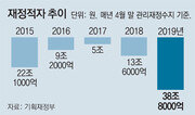 올해 들어 4월까지 재정적자가 8년 만에 최대 규모인 것으로 나타났다. 지출은 늘어난 데 반해 경기 악화로 세수가 받쳐주지 못하고 있어서다. 재정건전성이 예상보다 빠르게 악화되고 있다는 우려가 나온다. 11일 기획재정부의 ‘월간 재정동향’에 따르면 4월 말 현재 관리재정수지는 38조8000억 원 적자가 났다. 이는 월간 통계를 작성하기 시작한 2011년 이래 최대치로, 지난해 같은 기간(13조6000억 원 적자)과 비교해 3배 가까이로 증가했다. 관리재정수지는 세금 등 총수입에서 총지출과 4대 보장성 기금을 뺀 것으로 나라 살림살이를 보여주는 가계부 역할을 한다. 정부는 매년 국회에 예산안을 제출하면서 관리재정수지 적자 규모를 예측해 엄격하게 관리해왔다. 올해 예산안에 명시한 관리재정수지 적자 목표치는 37조6000억 원으로, 4월까지의 적자가 이미 올해 목표치를 넘어섰다. 추가경정예산 제출 당시 변경된 적자 목표치 42조6000억 원에도 이미 가까워졌다. 기재부 관계자는 “국세 수입이 지난해 수준밖에 안 들어왔는데 올해 재정을 확대해서 관리재정수지 적자가 늘었다”고 털어놨다. 실제로 4월 말 기준 국세 수입 자체가 1년 전보다 5000억 원 줄었다. 목표 수입 대비 실제 걷은 금액의 비율인 세수진도율은 37.1%로 1년 전보다 3.9%포인트 떨어졌다. 3월 말 세수진도율이 전년 대비 2.9%포인트 떨어졌는데, 그 폭이 더 커지고 있는 것이다. 세수 항목 중에서는 특히 기업들이 내는 법인세 감소가 두드러졌다. 4월 말 기준 법인세수 진도율은 1년 전보다 5.8%포인트 떨어졌다. 3월에는 이 격차가 5.0%포인트였는데 더 벌어졌다. 부동산 거래 감소로 양도소득세가 줄면서 소득세 진도율은 1년 전보다 3.3%포인트 감소했고, 경기 부진 여파로 부가가치세 진도율도 0.5%포인트 하락했다. 법인세 감소는 지난해부터 시작된 경기 부진으로 기업들의 납세 여력이 쪼그라들었음을 보여준다. 기업들은 2018년 상반기 실적을 토대로 지난해 8월 한 차례 세금을 냈고, 결산실적이 나온 올해 3월 나머지 세금을 냈다. 지난해 하반기 실적이 고꾸라지면서 올 3월에 걷은 법인세가 예상에 못 미쳤다. 4월 들어서도 세수가 회복되기는커녕 오히려 지난해 같은 기간과 비교한 세수진도율 격차는 더 커지고 있다. ▼ 정부지출 9.5% 늘려잡았는데, 법인세수 진도율 5.8%P 떨어져 ▼나라살림 적자 3배로세수 부진이 이어지면서 정부의 세수 전망보다 세금이 적게 걷히는 ‘세입 결손 사태’가 빚어질 수 있다는 우려도 나온다. 기재부는 당초 세출 예산안을 짜면서 올해 세수가 294조8000억 원으로 작년보다 0.4% 늘어날 것으로 예상했다. 하지만 올 4월까지 세수는 작년 같은 기간보다 0.4% 감소했다. 반면 정부 지출은 추경을 제외하고도 작년보다 9.5% 늘려 잡은 상태다. 글로벌 금융위기가 한창이던 2009년(10.6% 증가) 이후 10년 만의 최대 폭이다. 세수는 줄어드는데 지출은 늘려야 하기 때문에 1∼3월 국채 발행 규모는 사상 최대였던 것으로 집계됐다. 금융투자협회에 따르면 1분기 국고채와 재정증권 등 국채 발행액은 48조5227억 원으로 지난해 같은 기간보다 42.3% 증가했다. 4월 말 기준 중앙정부 채무(675조8000억 원)는 한 달 전보다 5조5000억 원 늘었는데, 여기에 추경까지 집행하려면 국채 3조6000억 원을 추가로 발행해야 한다. 이런 가운데 수출마저 회복될 기미를 보이지 않아 기업들의 담세 능력이 회복되기 어렵다는 전망이 나온다. 관세청에 따르면 이달 1∼10일 수출은 103억 달러로 지난해 같은 기간보다 16.6% 감소했다. 특히 반도체 수출이 1년 전보다 30.8% 감소했다. 이대로라면 지난해 12월부터 감소세로 돌아선 수출이 7개월 연속 줄어들 가능성이 높다. 최근 한국은행이 국민계정 기준연도를 2010년에서 2015년으로 변경하면서 수치상의 국내총생산(GDP) 규모가 커져 국가채무비율이 자동적으로 낮아지자 정부는 재정지출 확대에 면죄부를 받았다는 기류다. 전문가들은 현 시점에서 지출 확대는 불가피한 측면이 있지만 재정 악화의 속도가 우려스럽다는 지적을 하고 있다. 옥동석 인천대 무역학과 교수(전 조세재정연구원장)는 “기준연도 변경에 따른 재정여력 확충은 장부상의 숫자일 뿐이다. 전년도, 전 정부의 국가채무비율도 다 낮아졌다는 의미여서 중장기적으로 보면 풀 수 있는 재정이 늘어났다고 보기는 어렵다”고 했다. 기재부 관계자는 “하반기에 법인세나 부가세가 더 들어오면 적자가 줄어들 수 있다”고 했다. ? 관리재정수지정부 수입에서 지출을 뺀 뒤 미래를 위해 쌓아두는 국민연금 고용보험 등 사회보장성 기금 흑자액까지 제외한 금액. 나라의 실제 재정상태를 보여주는 가계부 역할을 한다.세종=최혜령 herstory@donga.com·이새샘 기자}