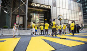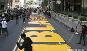 9일(현지 시간) 도널드 트럼프 미국 대통령이 소유한 뉴욕 맨해튼 5번가 트럼프타워 건물 앞 길바닥에 인종차별 반대 시위대의 구호인 ‘흑인 생명도 소중하다’(BLM·Black Lives Matter)가 등장했다. 야당 민주당 소속의 빌 더블라지오 뉴욕시장, 흑인 인권운동가 알 샤프턴 목사 등이 시민들과 같이 노란색 페인트칠을 하며 이 문구를 그렸다. CNN 등에 따르면 마스크를 쓴 채 나타난 더블라지오 시장은 “대통령은 우리가 호화로운 5번가의 격을 떨어뜨린다고 했지만 우리는 5번가를 해방하고 5번가의 격을 높였다”고 주장했다. 시민들 역시 “우리의 거리”라고 환호했다. 역시 민주당 소속인 흑인 여성 정치인 뮤리얼 바우저 워싱턴 시장은 지난달 5일 백악관에서 약 200m 떨어진 세인트레지스 호텔 앞 도로에 같은 문구를 새겼다. 그는 원래 16번가였던 도로 이름 역시 ‘흑인 생명도 중요하다’로 바꿨다. 트럼프 대통령은 이 구호가 등장한다는 소식이 알려졌을 때부터 강하게 반발하며 “증오의 상징이다. 경찰이 막아야 한다”고 비판했다. 대통령 취임 전 오랫동안 이 곳에서 거주한 트럼프 대통령은 2015년 6월 이 곳에서 대선 출사표를 던졌다. 이날 일부 대통령 지지자들은 항의와 욕설을 하며 페인트칠을 하는 시민과 맞섰다.뉴욕=유재동 특파원 jarrett@donga.com}