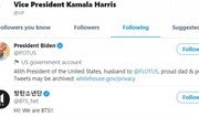 카멀라 해리스 미국 부통령(57)의 트위터 계정이 그룹 방탄소년단(BTS)의 계정을 팔로한 사실이 밝혀졌다. 22일(현지 시간) 미국 연예매체 빌보드는 “매의 눈을 가진 트위터 유저들이 해리스 부통령의 팔로 목록에 BTS가 포함된 것을 발견했다”며 이 사실이 BTS 팬 ‘아미(ARMY)’ 사이에서 큰 화제가 됐다고 보도했다. 해리스 부통령은 총 778개의 계정을 팔로하고 있다. 또 다른 트위터 사용자는 해리스 부통령의 선곡 목록에 BTS 노래가 있다는 점도 발견했다. 이 사용자가 공개한 캡처 사진에는 해리스 부통령이 스포티파이 계정에서 만든 ‘여름 선곡 목록’ 일부가 들어 있다. 이곳에 BTS가 미 팝스타 할시와 부른 ‘보이 위드 러브(Boy With Luv)’가 포함됐다. 해리스 부통령 본인이 ‘나는 BTS 팬’이라고 밝힌 적은 없다. 누리꾼들은 계정 팔로와 선곡 목록 등을 감안할 때 그가 아미에 속할 가능성이 있다고 보고 있다. 해리스 부통령 계정 팔로 목록에는 여성 래퍼 퀸 라티파, 뮤지컬 배우 빌리 포터, 가수 저넬 모네이 등 비백인 예술가들이 다수 포함됐다.김민 기자 kimmin@donga.com}
