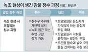 “이러다가 수돗물까지 ‘녹차라떼’ 되는 거 아닌가요?” “간 질환을 일으키는 독이 있다는데… 수돗물 마셔도 되나요?” 최근 소셜네트워크서비스(SNS)에 자주 보이는 시민들의 우려 섞인 목소리다. 폭염으로 국내 강과 호수에 ‘녹조(綠潮)’가 확산되면서 먹는 물 안전에 대한 걱정이 커진 것. 녹조는 식물 플랑크톤의 일종인 남조류가 과다 증식해 강이나 호수가 푸르게 변하는 현상이다. 실제 녹조로 인해 하천 환경은 나날이 악화되고 있다. 영남권 식수원인 낙동강 내 창녕함안보 일대 남조류 개체 수는 mL당 3만6250개(16일 기준)로, 8일(7906개)보다 5배 가까이로 증가한 것으로 19일 확인됐다. mL당 남조류 세포 수가 1000개만 넘어도 ‘조류경보’가 발령되는 점을 감안할 때 최악으로 치닫고 있는 셈. 충청권 식수원인 대청호 역시 같은 기간 남조류 세포 수가 mL당 5282개에서 8630개로 증가했다. 영산강 내 승천보 일대는 2만7380개, 금강 내 공주보 일대는 2만3000개까지 측정됐다. 부산지역 상수원인 물금취수장 속 남조류 세포 수도 1만 개를 넘었을 정도. 여기에 최근 한강 하류에서까지 녹조 띠가 발견되면서 시민들의 우려가 증폭됐다. 환경부 관계자는 “한강 하류 쪽은 취수 지역이 아니다”라며 “다행히 수도권 식수원인 팔당호는 남조류가 증가하지는 않았고, 북한강과 남한강에서는 남조류가 발견되지 않았다”고 밝혔다. 문제는 계속되는 폭염으로 8월 말까지는 녹조 현상이 더 악화될 위험성이 크다는 점이다. 식수원 관리에 비상이 걸릴 수밖에 없다. 남조류에는 간질환을 유발하는 독소물질(마이크로시스틴-LR)이 들어 있다. 수돗물은 안전할까? 정부와 민간 전문가들은 국내 정수 시스템에서는 녹조를 완벽히 걸러낼 수 있다고 진단했다. 정수는 취수→침전→여과→염소 소독 과정으로 이뤄진다. 하지만 요즘처럼 녹조가 심해지면 정수 과정이 강화된다. 우선 취수구의 방향을 수면 아래로 내려 햇빛이 투과되는 곳까지 번식하는 남조류의 취수장 유입을 최소화한다. 또 취수구 주위로 차단막을 설치하는 한편 수차 형태의 ‘수면 교란 장치’로 물결을 일으켜 녹조 접근을 막는다. 화학적 정수 과정도 강화된다. 이물질을 응집시켜 가라앉게 하는 응집제 투입량을 늘리고, 활성탄을 사용해 냄새, 오염물질을 흡착시킨다. 오존을 물속에 투입해 이물질을 산화시키는 한편 소독물질도 평소보다 더 많이 투입한다. 환경부 측은 “정수 과정을 거치면 99% 이상 남조류가 제거된다”고 강조했다. 경희대 이기태 생물학과 교수는 “정수시설이 잘 갖춰져 있어 관리가 잘되고 있다”고 진단했다. 하지만 녹조 발생으로 인해 정수 과정에서 소독, 응집 등의 약품 투입량이 늘어나는 점은 문제로 지적된다. 소독 부산물 중 하나인 총트리할로메탄(THMs)은 발암성을 띤 물질로, 과다하게 복용하면 몸에 해롭다. 수돗물 속 총트리할로메탄이 유아에게 선천적 기형을 발생시킬 수 있다는 해외 연구 결과도 있다. 신재은 환경운동연합 물하천팀장은 “정부가 화학용품 사용이 늘어나도 안심할 수 있는지 충분한 설명 없이 녹조 처리가 가능하다는 점만 강조하다 보니 시민의 불안감이 더 커진 것”이라고 말했다. 김윤종 zozo@donga.com·임현석 기자}