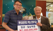박승 전 한국은행 총재(84)가 3일 사재 10억 원을 모교인 전북 김제 백석초등학교의 장학기금으로 기부했다. 백석초등학교에 따르면 이 학교 동문(20회 졸업)인 박 전 총재는 이날 오전 서울 평창동 하나은행 지점에서 문홍민 교장에게 10억 원의 신탁채권을 전달했다. 기부한 10억 원은 박 전 총재의 최소한의 생활비를 제외한 전 재산으로 알려졌다. 은행채 영구채권에 투자돼 매 분기 학교에 780만 원 정도의 이자를 장학금으로 지급하게 된다. 박 전 총재는 동아일보와의 통화에서 “농촌에서 어렵게 자라서 이렇게 성장할 수 있었던 것은 내가 다닌 학교와 우리 사회 덕분”이라며 “그 고마움을 돌려주기 위해 모교에 기부하기로 결정했다”고 말했다. 이어 “기부한 장학금은 학생 교육의 질적 향상을 위해 써달라고 했다”며 “모교가 인재 양성의 명문 학교가 되는데 보탬이 되었으면 한다”고 덧붙였다. 학교 측은 ‘박승 장학기금위원회’를 구성해 기금을 학교 발전에 사용할 예정이다. 박 전 총재는 회고록 등을 통해 자신의 재산을 자녀에게 주지 않고 사회에 환원하겠다고 약속했었다. 실제 2010년에도 백석초등학교에 5억 원을 들여 도서관을 지어줬다. 2018년에는 김대중 평화센터에 3억 원을 전달했고 지난해에는 모교인 이리공고에 7억 원을 장학금으로 내놨다. 박 전 총재는 서울대 경제학과를 졸업한 뒤 1961년 한은에서 사회생활을 시작했다. 이후 중앙대 교수, 금융통화위원, 대통령경제수석비서관, 건설부 장관, 한은 총재 등을 지냈다.김제=박영민 기자 minpress@donga.com}