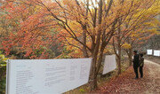 “천 년 은행나무를 사랑하는 것은 쉽지만/사람을 사랑하는 것은 어렵구나/천 년 은행나무를 사랑하는 데는 걸림이 없지만/사람을 사랑하는 데는 걸림이 많구나/천 년 은행나무는 사랑의 멍에를 풀어주지만/사람은 오히려 멍에를 씌우는구나”(‘천 년 은행나무를 바라보며’·강상기 작) 충북 영동군 양산면 누교리 천태산(715m) 들머리에는 통일신라 후기에 창건된 것으로 전해지는 천년고찰 영국사(寧國寺)가 있다. 이 사찰 바로 앞에는 원각국사비(보물 제534호) 등 보물 5개와 함께 영국사를 대표하는 은행나무 한 그루가 굳건하게 자리 잡고 있다. 수령 1000년 이상으로 추정되는 이 은행나무는 키 31.4m, 가슴높이 둘레 11.5m다. 1970년 천연기념물 제223호로 지정됐다. 전쟁같이 나라에 큰일이 생기면 미리 울음을 내는 등 영험한 기운이 있다는 이야기가 전해 오고 있다. 1000년의 삶을 살고 있는 영국사 은행나무 부근에서 국내 최대 규모의 걸개 시화전이 펼쳐지고 있다. 1일 시작한 이 걸개 시화전에는 김용택, 도종환, 신경림, 안도현, 최서림, 황구하 등 국내 원로 시인부터 신예 시인까지 모두 368명이 참여해 펴낸 시 모음집 ‘천태산 부처’에 수록된 시가 내걸렸다. 시화전은 연말까지 진행된다. 걸개 시화전과 시집 발간의 주역은 ‘천태산 은행나무를 사랑하는 사람들’(천은사·대표 양문규)이다. 천은사는 자신과 이웃, 대자연 속의 생명과 평화를 지키고 가꾸기 위해 양문규 시인 주도로 2009년 2월 창립했다. 현재 전국 500여 명의 문화예술인이 참여하고 있다. 서울에서 작품 활동을 하던 양 시인은 실천문학 기획실장을 마지막으로 1998년 고향인 영동에 내려와 문인들의 작업실 겸 사무실인 황토방 ‘여여산방’(如如山房·자연 속에서 자연스럽게 사는 곳)을 열고 창작 활동을 하고 있다. 천은사는 그동안 문화재청의 ‘문화재 생생사업’ 시범사업 우수사업기관으로 선정돼 △천태산 은행나무 시제(詩祭) △1000년 은행나무 생명 스테이 △천태산 은행나무 문학상 등의 사업을 진행했다. 양 시인은 “올해도 전국에서 시인 368명이 시 모음집 발간과 걸개 시화전을 열 수 있도록 시를 보내와 고맙다”며 “앞으로도 많은 시인의 작품을 통해 자연과 생명, 그리고 평화가 충만한 천태산 은행나무 축전이 될 수 있도록 노력하겠다”고 말했다. 천은사는 27, 28일 1박 2일 일정으로 송호수련원과 천태산 은행나무 아래에서 ‘2018 시에 반딧불이 문학학교 및 천태산 은행나무 시제’를 열 예정이다. 장기우 기자 straw825@donga.com}