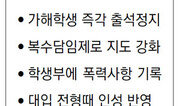 학교폭력을 저지른 학생은 학교장이 즉각 출석을 정지시킬 수 있다. 또 폭력서클인 일진회를 파악하기 위한 ‘일진경보제’를 도입해 2회 이상 학교가 신고하면 경찰이 단속에 나선다. 학교폭력을 은폐한 교장과 교사는 강력한 징계를 받는다. 정부는 6일 김황식 국무총리 주재로 학교폭력 관계 장관 회의를 열고 ‘학교폭력 근절 종합대책’을 발표했다. 종합대책은 가해 학생 처벌과 교육, 피해 학생 보호를 담은 ‘직접 대책’과 인성교육 강화, 게임중독 해소와 같은 ‘근본 대책’으로 구성됐다. 학교장은 학교폭력 피해자를 보호할 필요가 있을 경우 가해 학생을 즉시 출석 정지시킬 수 있다. 지금까지는 학내 학교폭력대책자치위원회가 처벌 수준을 결정하는 동안 추가 피해가 생길 우려가 있었다. 학교장에게 권한을 주는 만큼 책임도 무거워진다. 학교폭력을 은폐하는 학교장과 교사는 4대 비위(성폭력, 신체폭력, 금품수수, 성적조작) 수준으로 징계를 받는다. 담임교사는 올해부터 매 학기 1회 이상 모든 학생들과 일대일 면담을 하고 결과를 학부모에게 통지해야 한다. 담임교사의 생활지도 업무가 무거워지지 않도록 학생 수가 많은 학교에는 담임이 2명인 ‘복수담임제’를 도입하기로 했다. 교육과학기술부는 폭력서클인 ‘일진회’를 뿌리 뽑기 위해 정기적으로 조사를 해서 일정 점수 이상이 나오거나 신고가 2회 이상 들어온 학교에 일진 경보를 내리기로 했다. 이런 학교에는 경찰을 포함한 외부 인력을 투입해 실태를 조사하고 위험 학생을 치료할 예정이다. 3월부터는 학생부에 학교폭력 관련 징계사항과 인성영역 특기사항을 적는다. 대학 입학사정관제 전형에서는 자기소개서에 인성 항목을 신설한다. 한편 이명박 대통령은 이날 라디오연설에서 “학교폭력으로부터 아이들을 지키기 위해 모두가 함께 나서야 한다. 사안이 가볍거나 처음이라면 선도해야겠지만 그 밖의 경우는 경찰이 엄정 조치할 것”이라고 말했다. 남윤서 기자 baron@donga.com 장택동 기자 will71@donga.com }