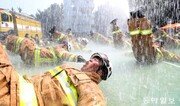 컴컴했다. 뿌연 연기 속에 쉴 새 없이 울리는 ‘삑’ 하는 경보기 소리가 신경을 긁고 지나갔다. 산소호흡통의 산소가 많이 남지 않았다는 신호다. 들이켜는 숨을 아끼며 왼손은 벽을 짚고 오른손은 호스를 잡은 채 오리걸음을 걸었다. 등에 멘 8kg 무게의 산소호흡통과 두꺼운 방화복 때문에 움직이기 쉽지 않았다. 바깥으로 나와 헬멧을 벗자 땀 때문에 이마와 목덜미에 머리카락이 엉겨 붙어 있었다. 8일 오후 2시 서울 서초구 서울소방학교 훈련장. 낮 최고기온 35.2도의 폭염에 4kg 방화복을 입고 15kg에 가까운 장비를 멘 이들이 있었다. 소방공무원 임용 후보자 83명이다. 지난달 23일부터 3주간 진행된 야외 화재대응훈련의 마지막 날에 동행했다. 이날 진행된 훈련은 지하층과 고층에서 화재가 발생했을 때 인명구조와 화재진압·탈출, 4인조 화재진압 전술이었다. 각 4인으로 구성된 20여 조가 지하 2층, 지상 7층의 훈련탑 건물 곳곳에서 훈련을 진행했다. 먼저 지하 1층에서는 화재가 난 건물로 진입하는 훈련부터 시작했다. 일렬로 쪼그려 앉은 4명의 훈련생 중 맨 앞 훈련생이 문손잡이를 잡았다. 교관이 쏘는 붉은 레이저 점에 맞춰 두 번째 훈련생이 호스를 붙잡고 문 모서리 2곳에 물을 뿜었다. 살짝 열린 문틈을 향해서도 살수한 후 문을 닫았다. “현장에서는 15초를 세지만 여기서는 5초를 센다”는 서울소방학교 김영주 교관의 말에 훈련생들이 다섯까지 센 후 같은 작업을 반복했다. 건물에 진입한 후에는 화점(火點)을 발견하고 정확하게 진압하는 연습이 이어졌다. ‘불 화(火)’자가 적힌 종이를 향해 물을 발사한 후 잠시 호스를 내려놓는다. 이 학교 박규상 교수는 “재산 피해를 최소화하면서 신속하게 불을 끄기 위한 연습”이라고 말했다. 6층에서 이뤄진 고층 인명구조 훈련은 지하 훈련보다 한층 어렵다. 실제 상황과 더욱 비슷하도록 암흑 속에 희뿌연 연기를 피운다. 실내는 미로로 만들어져 있다. 시각에 의존하면 공포심에 길을 잃기 쉬운 현장에서 다른 감각으로 인명구조 연습을 하기 위해서다. 어둠 속에서 들고 온 25kg의 사람 모형을 바닥에 내려놓자 교관은 “실컷 요(要)구조자 찾아와 놓고 죽게 둘 거야”라며 호통을 친다. 잠시 당황하던 훈련생들이 급히 보조 산소마스크를 사람 모형의 머리에 씌웠다. 자신이 호흡하는 데 써야 할 산소를 나눠 쓰는 셈이다. 땀범벅으로 건물에서 나온 김예진 훈련생(26·여)은 “처음 이 직업을 선택할 때부터 각오는 했었지만 훈련을 받으며 직업의 무게를 실감하고 있다”고 말했다. 하반기에는 응급구조·구급 훈련 등이 예정돼 있다. 훈련을 무사히 마친 후보자들은 내년 1월 임용된다.김예윤 기자 yeah@donga.com}