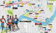 마지막 페이스메이커인 키코리르가 35km 지점에서 빠져나간 뒤 이날 챔피언이 된 윌슨 로야나에 에루페(케냐) 등 6명이 함께 레이스를 펼친 게 주효했다. 그동안 막판까지 이렇게 많은 선수가 경쟁을 한 적이 없었다. 2위를 한 제임스 킵상 쾀바이(케냐)가 먼저 치고 나가면서 에루페와 필립 키무타이 상가(케냐) 등이 일렬로 달리면서 순위싸움이 벌어졌다. 36.5km 지점에서부터 쾀바이와 에루페가 나란히 달리며 선두 경쟁에 들어갔다. 둘 다 힘이 남아 있어 끝까지 선두다툼을 벌일 줄 알았는데 38.5km 지점에서 에루페가 스퍼트하며 거리 차를 벌려 나갔다. 에루페는 40km 지점에서는 쾀바이를 100m 이상 떨어뜨리며 사실상 우승을 예약했다. 이날 에루페는 35km부터 40km까지 5km를 14분11초에 주파하는 저력을 보였다. 이는 세계 최고기록(2시간3분38초)이 수립될 때(14분59초)보다 빠른 것이었다. 세계기록 보유자 패트릭 마카우 무쇼키(케냐)가 기록을 경신할 때 가장 빠른 5km구간 기록은 14분20초였다. 에루페의 막판 스퍼트는 더 무서웠다. 독주 체제에 들어가면 페이스가 떨어질 수 있는데 마지막 2.195km를 6분12초에 달렸다. 보통 초반 컨디션이 좋을 때 km당 3분 페이스보다 약간 빠르게 달리는데 에루페는 레이스 막판까지 이 페이스로 달린 것이다. 잠실대교를 건너기 전인 약 34km 지점부터 선수들이 언제 스퍼트해야 할지 눈치싸움을 벌인 게 아쉬웠다. 30km에서 35km까지 5km 랩타임이 15분31초로 당초 계획보다 30초 이상 더 걸렸다. 이후 본격적인 경쟁이 붙어 다행이지만 이 구간만 좀 빨리 끌었다면 충분히 2시간4분대까지 바라볼 수 있었다. 정진혁(건국대)은 한국기록(2시간7분20초)에 대한 부담이 너무 컸다. 처음 5km를 15분4초, 다음 5km도 15분5초로 잘 달렸는데 10∼15km 구간에서 15분23초로 처지면서 페이스를 잃었다. 여자부 국내부에서는 김성은(삼성전자)과 정윤희(K-water), 박호선(삼성전자) 등이 레이스 운영을 잘했다. 29세 노장 정윤희는 2시간30분34초로 2003년 이후 9년 만에 개인 최고기록을 세워 돋보였다.양종구 기자 yjongk@donga.com ○특별취재반▽스포츠레저부안영식 부장, 이원홍 황태훈 김종석 양종구 차장, 이승건 이헌재 이종석 유근형 정윤철 조동주 기자▽사회부박진우 손효주 조건희 김준일 서동일 송금한 전주영 권기범 기자 ▽사진부김동주 신원건 차장, 원대연 박영대 최혁중 김재명 홍진환 장승윤 양회성 기자▽스포츠동아전영희 김민성 권현진 기자▽채널A김동욱 한일웅 기자}