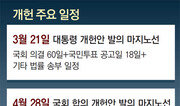 문재인 대통령이 26일 ‘대통령 개헌안’을 발의(發議)한다. 문 대통령이 개헌안을 발의하면 국회는 최장 60일(5월 24일) 이내에 대통령 개헌안을 표결로 의결해야 한다. 청와대는 20일부터 3일에 걸쳐 개헌안의 내용을 공개하며 개헌을 위한 여론전을 본격화할 예정이다. 문 대통령은 19일 “헌법 개정안을 26일 발의할 수 있도록 준비에 만전을 기하라”고 지시했다고 진성준 대통령정무기획비서관이 밝혔다. 당초 문 대통령은 28일 개헌안을 발의하려고 했지만 “헌법이 정한 국회 심의 기간 60일을 보장해 달라”는 더불어민주당의 요청을 받아들여 26일 발의로 당겼다. 진 비서관은 브리핑에서 “헌법과 법률이 정한 절차와 기한을 준수하되, 국회가 개헌에 합의할 수 있는 마지막 기회를 드리기 위한 조치”라고 설명했다. 6월 13일 지방선거와 개헌 국민투표 동시 실시를 위해선 최장 60일의 국회 심의 기간과 국민투표 공고일(18일) 등 78일이 필요하다는 점을 고려해 26일 발의한다는 것. 22일부터 28일까지 베트남, 아랍에미리트(UAE) 순방을 떠나는 문 대통령은 해외에서 전자결재로 개헌안을 발의한다. 문 대통령은 또 “개헌안에 대한 국민의 이해를 높이기 위해 대통령 개헌안을 분야별로 상세히 설명하라”고 지시했다. 이에 따라 조국 대통령민정수석비서관은 20일부터 22일까지 3일 동안 헌법 전문(前文) 및 기본권, 지방 분권 및 국민 주권, 정부 형태 등 헌법 기관의 권한과 관련한 사항들을 순차적으로 설명할 예정이다. 그러나 대통령 개헌안 발의에 야당이 강하게 반대하고 있어 국회 의결을 위한 재적 의원 3분의 2(현재 196명) 이상의 찬성을 얻기는 쉽지 않은 상황이다. 이 때문에 여당 일각에서는 “야당은 국회의 총리 추천권을, 청와대는 6월 개헌을 각각 포기해 10월에 개헌하자”는 ‘빅딜론’도 나오고 있다.한상준 alwaysj@donga.com·유근형 기자}