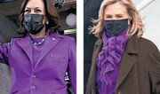 미국 최초의 여성, 유색인종 부통령이 된 카멀라 해리스(57)는 보랏빛 코트와 드레스를 입고 취임식에 참석해 눈길을 끌었다. 흑인 디자이너가 만든 보랏빛 의상을 통해 화합을 강조하고 첫 여성·흑인 부통령으로서의 정체성을 부각했다는 분석이 나온다. 20일(현지시간) 열린 취임식 의상으로 해리스는 뉴욕의 흑인 디자이너 크리스토퍼 존 로저스가 만든 보랏빛 의상을 택했다. 뉴욕타임스(NYT)는 빨간색(공화당)과 파란색(민주당)을 합친 보라색이 조 바이든 대통령이 강조한 ‘통합’을 상징한다고 분석했다. 보라색은 여성 참정권 운동도 상징한다. 미국의 첫 흑인 여성 하원의원이자 1972년 흑인 여성 중 처음으로 민주당 후보로 대통령 선거에 출마했던 셜리 치솜이 선거운동 중에 주로 사용했던 색이기도 하다. 해리스 부통령 외에 힐러리 클린턴 전 국무장관과 미셸 오바마 여사도 보랏빛 계열의 의상을 입어 눈길을 끌었다. 힐러리 클린턴은 갈색 코트 속에 보라색 랄프로렌 수트를, 미셸 오바마는 젊은 흑인 디자이너인 세르지오 허드슨이 만든 와인색 수트를 착용했다. 취임식에 참석한 주요 인사들은 미국 브랜드의 옷을 선택했다. 월스트리트저널(WSJ)에 따르면 바이든 대통령과 해리스 부통령의 남편 더글러스 엠호프는 미국을 대표하는 브랜드 ‘랄프 로렌’의 정장을 입었다. 질 바이든 여사는 남편의 넥타이와 톤을 맞춘 하늘색 울 트위드 코트 정장을 착용했다. 이 옷은 최근 미국에서 인기를 끌고 있는 디자이너 알렉산드라 오닐의 브랜드 마카리안에서 주문 제작했다.김민 기자 kimmin@donga.com}