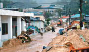 제18호 태풍 ‘미탁’이 한반도를 관통하면서 인명 및 재산 피해가 속출했다. 짧은 시간에 갑자기 폭우가 쏟아지면서 일부 지역에서 산사태가 발생했고 토사가 주택, 공장 등을 덮치면서 인명 피해까지 겹쳤다. 강원 삼척시의 한 마을에선 집 대부분이 토사에 반쯤 묻혔고 강릉에선 도로 곳곳이 물에 잠겨 시내버스 운행이 중단됐다.○ 산사태로 토사가 주택을 덮쳐 3일 오전 9시 5분경 부산 사하구 구평동의 한 야산에서 산사태가 발생해 토사가 인근 주택, 공장, 식당을 덮쳤다. 주택에 있던 권모 씨(75)와 아내(70), 아들(48) 등 일가족 3명과 식당에 있던 60대 여성 등 4명이 매몰됐다. 이날 오후 10시 현재 매몰자 4명 중 2명이 숨진 채 발견됐다. 발견된 매몰자 중 한 명은 토사 더미 3m 아래 묻혀 있었다. 경찰과 소방, 군부대는 600여 명과 중장비 20여 대, 구조견 등을 동원해 수색·구조 작업을 벌였지만 산사태로 흘러내린 토사가 워낙 많아 어려움을 겪었다. 사고 현장에는 토사가 정상에서 400여 m산비탈을 타고 내려와 매몰된 주택은 지붕이 보이지 않을 정도로 깊이 파묻혔다. 산사태는 폭우로 지반이 약해지며 일어난 것으로 추정된다. 3일 0시 56분경 삼척시 오분동에서 경사지가 붕괴되면서 토사가 김모 씨(77·여)의 집을 덮쳤다. 119대원들이 주택에 있던 김 씨를 구조해 병원으로 옮겼지만 숨졌다. 같은 날 오전 1시 16분경 경북 영덕군 축산면에선 김모 씨(66) 자택이 무너지면서 아내(59)가 매몰돼 숨졌다. 포항시 북구 기북면 대곡리에서는 폭우로 주택이 쓰러지면서 노부부가 매몰됐다. 60대 아내는 구조됐지만 70대 남편은 끝내 숨진 채 발견됐다. 울진군 울진읍의 한 주택이 무너지면서 60대 부부가 매몰돼 병원으로 옮겨졌지만 숨졌다.○ 순식간에 ‘물폭탄’ 쏟아진 강원 영동 강원 동해안에 300mm가 넘는 ‘물폭탄’이 쏟아지면서 강릉과 삼척, 동해는 도심 곳곳이 물에 잠겼다. 이 지역 주민들은 밤새 폭우와 거센 비바람에 뜬눈으로 밤을 새우다시피 했고 날이 밝자 흙탕물로 가득 찬 도시 풍경에 망연자실했다. 삼척시 원덕읍에는 2일부터 3일 오전 8시까지 341mm에 이르는 물폭탄이 쏟아졌다. 원덕읍 신남마을은 산사태로 쏟아진 토사와 나무들로 뒤덮였다. 마을 한가운데를 잔잔히 흐르던 복개천은 온데간데없이 사라졌다. 마실 다니던 샛길은 거센 물결이 흐르는 계곡으로 변했다. 빨간 등대로 유명한 신남항은 폭격을 맞은 듯 변해 부두에 가지런히 정리해 둔 어구는 대부분 사라졌다. 강릉 경포해수욕장 인근 진안상가는 물바다로 변했다. 한 상인은 “지난해 8월에도 침수돼 힘들었는데 다시 물난리를 겪고 보니 말이 안 나올 정도로 충격이 크다”며 “어떻게 대처해야 할지 아무 생각이 들지 않는다”고 말했다. 경포 저류지에 주차돼 있던 대형 트럭들은 운전석 창문만 보일 정도로 잠겼고 승용차들은 완전 침수되기도 했다. 강릉시내에서는 모든 노선의 시내버스 운행이 전면 중단됐다. 차고지 앞 도로가 무릎 높이만큼 물에 잠겨 버스들이 꼼짝을 할 수 없었다. 김정숙 씨(63·여)는 “모임이 있어 나왔다가 택시를 잡기 힘들어 정류장에서 기다렸는데 아무리 기다려도 오지 않아 모임 가는 것을 포기했다”고 말했다. 경포호 인근 경포대초등학교는 학교 1층이 침수됐고 중앙초등학교는 1, 2층에서 물이 새는 피해가 발생했다. 경포대초교는 물이 빠지는 데 시간이 걸릴 것으로 보고 4일 휴업을 결정했다. 이날 개막하는 강릉커피축제도 큰 타격을 받았다. 안목해변에서 진행하려던 축제는 취소됐고 축제장인 아이스아레나에도 흙탕물이 들어와 일부 행사가 연기됐다.삼척=이인모 imlee@donga.com / 부산=강성명 / 영덕=장영훈 기자}