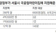 박원순 서울시장의 공약으로 2014년까지 신설되는 국공립어린이집 280곳에 대해 주무부처인 보건복지부가 운영비를 지원하지 않겠다고 선언했다. 복지부 인가 없이 지방자치단체가 자체적으로 세운 어린이집에 대해서는 운영비를 지원하지 않겠다는 것이다. 이에 따라 서울시의 국공립어린이집 확충 계획에는 차질이 불가피할 것으로 전망된다. 시는 올해 80곳, 2013년과 2014년에 각각 100곳씩 모두 280곳의 국공립어린이집을 세우기로 하고 지난달 1차로 32곳을 선정했다. 32곳에 투입되는 309억 원을 비롯해 올해 80곳에 총 890억 원을 쓸 계획이다. 국공립어린이집에 정부가 지원해주는 항목은 크게 4가지다. 인건비는 중앙정부와 서울 자치구가 각각 3 대 7 비율로 부담하고 있다. 신축비용, 기자재 지원, 환경개선비는 5 대 5로 매칭한다. 현재 서울시의 국공립어린이집은 모두 685곳. 지난해에만 국비 280억 원(28%) 시비 476억 원(47%) 구비 265억 원(25%)이 이 사업에 투입됐다. 정부에서 운영비를 보조하지 않을 경우 국공립어린이집 사업이 예상했던 것처럼 활성화되기 어려울 것으로 전망된다. 부모들은 정부가 인건비와 시설비 등을 지원하는 국공립어린이집이 보육의 질이 높아 선호하고 있는데 운영비가 나오지 않으면 나을 게 없다고 보고 있다. 결국 부모의 눈높이에 맞는 보육을 위해서는 시나 자치구의 예산이 추가로 들어야 한다. 서울시는 시비를 추가로 투입해서라도 국공립어린이집 확충 사업을 추진하겠다고 재차 밝혔지만 별도의 예산 편성이 어려운 것이 현실이다. 국공립어린이집은 신설 1년 전에 정부의 인가를 받도록 하고 있지만 실제 인가가 나오는 비율은 높지 않다. 정부는 예산 부담 탓에 인가 규모를 최소화하고 있다. 전국에 3만 곳이 넘는 어린이집 가운데 국공립어린이집은 5%뿐이다. 이런 상황에서 서울시가 정부와의 협의 없이 국공립어린이집을 대폭 늘리겠다고 하면서 혼선이 빚어지고 있는 것이다. 지난달 22일 발표한 복지부의 보육대책에서는 ‘지자체가 만드는 어린이집은 지자체가 자체적으로 비용을 충당해야 한다’고 명시했다. 서울시는 “1차로 선정된 32곳을 포함해 신설 중인 어린이집이 내년부터 문을 열 예정인데 그 사이 복지부와 협의해 지원을 받도록 하겠다”고 밝혔다. 국공립어린이집 문제는 서울시와 복지부의 감정싸움으로 흐를 조짐까지 보이고 있다. 복지부 관계자는 “무상보육 예산이 없다고 국고보조율을 높여 달라는 판에 국공립어린이집까지 지자체 마음대로 늘리겠다면서 예산을 달라고 하면 어떻게 하느냐”며 짜증스러운 반응을 보였다. 이에 대해 서울시는 “정부 주도로 올해부터 시행하는 0∼2세 무상보육 예산의 80%를 서울시에 부담하도록 떠넘기고 국비지원율 25%인 국공립어린이집 운영비는 지원하지 않겠다는 것은 불합리하다”고 반발했다.우경임 기자 woohaha@donga.com 노지현 기자 isityou@donga.com }