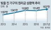 지난해 빚이 있는 가구가 원리금을 갚는 데 쓴 금액이 소득보다 3배 빠르게 불어난 것으로 나타났다. 새해에 기준금리가 다시 오르면 대출금리가 인상돼 서민의 빚 부담이 더 커질 것으로 우려된다. 30일 통계청과 금융감독원, 한국은행의 가계금융·복지조사에 따르면 2017년 빚이 있는 가구의 원리금 상환액이 1637만 원으로 1년 만에 8.1% 증가했다. 그러나 해당 가구의 지난해 처분가능소득은 5271만 원으로 같은 기간 2.7% 늘어나는 데 그쳤다. 원리금 상환액 증가율이 소득증가율을 압도한 것이다. 처분가능소득에서 원리금 상환액이 차지하는 비율은 31.1%로 전년보다 0.6%포인트 상승했다. 세금, 사회보험료 등을 제외하고 실제 쓸 수 있는 돈에서 3분의 1가량을 빚을 갚는 데 쏟아붓고 있는 것이다. 부채 보유 가구의 원리금 상환액은 2011년 887만 원으로 1000만 원에도 미치지 않았다. 하지만 이후에는 저금리가 지속되고 부동산 열풍이 불면서 빚의 총량이 급증했고, 이들 가구의 상환액도 꾸준히 증가했다. 정부가 금융권의 가계 대출을 억제하기 위해 가계부채 대책을 여러 차례 내놨지만 이런 현상은 앞으로도 한동안 지속될 것으로 보인다. 지난달 기준금리가 1년 만에 인상된 데 이어 내년에도 다시 오를 가능성이 있기 때문이다. 시장금리가 오르면 부채 규모의 증가 속도는 꺾일 수 있지만 빚 있는 가구의 상환액은 더 늘어난다. 한국은행은 최근 발표한 내년 통화신용정책 운용방향에서 “가계부채가 증가하는 와중에 변동금리 대출 비중도 높아 대출금리가 상승할 때 가계의 이자 상환 부담이 늘어날 것”이라며 “변동금리 비중이 높은 비은행 대출, 신용대출을 많이 보유한 취약 차주의 어려움이 커질 수 있다”고 분석했다. 이에 따라 취약계층의 악성 부채가 상환 불능에 빠지지 않게 정부가 세밀한 대책을 마련해야 한다는 지적이 많다. 박덕배 서민금융연구원 부원장은 “취약계층의 빚 부담을 낮추는 금융상담과 교육을 강화하고 일자리 문제를 빨리 해결할 필요가 있다”고 말했다. 가계의 원리금 상환액이 이처럼 빠른 속도로 늘어나면 내년도 통화정책도 영향을 받을 수 있다는 전망이 나온다. 주원 현대경제연구원 경제연구실장은 “지금처럼 경기가 좋지 않아 가계소득이 늘기 힘든데 원리금 상환액은 계속 증가하고 있으므로 한국은행 금융통화위원회가 내년에 기준금리를 더 올리기 버거워질 것”이라고 전망했다. 조은아 기자 achim@donga.com}