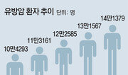 유방암 환자가 급속히 늘고 있는 반면 1인당 평균 진료비는 약간 줄어든 것으로 나타났다. 서구화된 식습관, 빠른 초경과 늦은 출산 등으로 인해 유방암 위험성이 높아진 가운데 검진을 통해 병을 조기에 발견하는 환자가 많아졌기 때문으로 분석됐다. 24일 건강보험공단은 유방암으로 진료받은 환자가 2011년 10만4293명에서 지난해 14만1379명으로 35.6%나 늘었다고 밝혔다. 같은 기간 전체 진료비는 4414억 원에서 5962억 원으로 35.1% 뛰었지만 1인당 평균 진료비는 423만 원에서 422만 원으로 약간 줄었다. 유방암 검진 인원이 324만 명(대상자의 51.5%)에서 368만 명(60.9%)으로 늘어나는 등 초기에 유방암을 진단받은 환자의 비율이 높아진 덕에 거액의 의료비를 들여야 하는 중증 환자의 비율은 낮아졌다는 뜻이다. 노동영 서울대병원 헬스케어시스템강남센터 원장(유방외과 교수)은 “예전엔 유방암을 1기에 발견하는 환자가 15% 정도밖에 되지 않았지만 지금은 절반이 넘는다”고 말했다. 유방암은 유방에 암 세포로 이뤄진 종괴(만져지는 덩어리)가 생기는 경우를 말한다. 유방에 멍울이 만져지거나 유두에서 분비물이 나와 병원을 찾는 사례도 있지만, 대부분은 정부가 40세 이상 여성에게 2년마다 무료로 지원하는 유방암 검진에서 진단을 받는다. 유방암 환자는 진단받은 뒤에도 5년 이상 살 가능성이 91.5%나 된다. 방사선 치료, 내분비(항호르몬) 요법 등 보조적 치료법이 암을 극복하는 데 효과가 높기 때문이다. 무료 검진이 적용되지 않는 20, 30대 여성은 매달 자가 진단을 하는 게 좋다. 지난해 20, 30대 유방암 환자의 1인당 진료비 부담은 각각 720만 원, 636만 원으로 40대(489만 원)나 50대(403만 원)보다 훨씬 컸다. 20, 30대 여성의 경우 전이성이 강한 ‘악성’ 유방암 환자의 비율이 높기 때문으로 풀이된다. 자가 진단은 팔을 들어올린 뒤 손가락 두세 번째 마디로 유방 바깥쪽부터 안쪽으로 원을 그려가며 문지르면서 평소와 달리 혹이 잡히는지 살피는 방식으로 진행한다. 고기보다는 섬유질이 풍부한 채소와 과일을 많이 먹고 음주를 삼가는 게 예방에 도움이 되는 것으로 알려져 있다. 가족 중에 유방암 환자가 있거나 초경이 빠르면 유방암에 걸릴 위험이 높다. 손미아 강원대 의대 예방의학과 교수는 2008∼2012년 9445명이었던 유방암 여성 사망자가 2028∼2032년엔 1만3973명으로 늘어날 것으로 예측하며 여성의 야근, 초과근무 증가 등 노동 조건 악화도 유방암 위험을 높인다고 분석했다.조건희 기자 becom@donga.com}