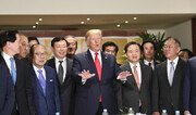“미국에 많은 투자를 하고 일자리를 창출해준 한국의 비즈니스맨들과 그룹의 총수들에게 감사합니다.” 도널드 트럼프 미국 대통령이 30일 오전 한국 재계 총수들과 최고경영자(CEO)들을 불러 모은 자리에서 거듭 감사를 표했다. 전날 1박 2일 일정으로 방한한 트럼프 대통령은 이날 오전 숙소인 서울 용산구 그랜드하얏트호텔에서 열린 국내 기업인과의 간담회에서 삼성, 현대자동차, SK, 두산, CJ 등 기업 이름을 직접 거명하며 ‘생큐 릴레이’를 이어갔다. 국내 한 대기업 관계자는 “사실 간담회 직전까지도 대미 투자를 압박하거나 중국 ‘화웨이’ 제재에 동참하라는 강경한 메시지가 나오진 않을까 걱정했는데 예상과 달리 감사와 격려의 메시지가 많아 다행이었다”고 평가했다. 총수들은 이날 오전 8시를 전후로 예정됐던 시간보다 일찍 간담회장에 도착했다. 정의선 현대차 수석부회장이 8시 5분경 가장 먼저 도착했고 이어 이재용 삼성전자 부회장, 신동빈 롯데 회장, 최태원 SK 회장 등이 행사장으로 들어섰다. LG에선 구광모 회장 대신 권영수 부회장이 참석했다. 김승연 한화 회장과 허창수 GS 회장, 정용진 신세계 부회장, 박정원 두산 회장, 손경식 CJ 회장, 조현범 한국타이어 사장, 한성숙 네이버 대표 등 총 18명의 기업인이 참석했다. 올해 5월 미국 루이지애나에 3조6000억 원을 들여 에틸렌 공장을 완공한 뒤 백악관에서 트럼프 대통령과 면담한 신동빈 회장을 제외하고는 총수 대부분이 트럼프 대통령과 첫 만남이었다. 이재용 부회장은 2016년 말 당선자 신분이던 트럼프 대통령으로부터 글로벌 정보기술(IT) 거물들과의 만남인 ‘테크 서밋’에 초청받았지만 특검 수사로 출국이 금지되면서 만나지 못했다. 이날 트럼프 대통령은 연설 초반부터 신동빈 회장을 호명하며 “너무나도 훌륭한 많은 일을 성취했다”며 “내 옆에 와서 얘기해야 할 것 같다”고 말해 참석자들로부터 환호를 이끌어냈다. 이어 원형 테이블에 둘러앉은 이재용 부회장과 정의선 수석부회장, 최태원 회장, 손경식 회장 등도 일으켜 세우며 “미국에 투자해주신 한국 기업인분들께 감사의 말씀을 차례로 드리고 싶다”고 했다. 삼성전자는 지난해 초 미국 사우스캐롤라이나에 가전 공장을 세운 데 이어 내년까지 텍사스 오스틴 반도체 공장에 15억 달러(약 1조7000억 원)를 투자해 생산 설비를 확충할 계획이다. LG전자도 5월 테네시주에 세탁기 공장을 준공했으며 현대차는 앨라배마에서 2005년부터 공장을 가동해 왔다. SK이노베이션은 조지아에 전기차 배터리 공장을 짓고 있다. 트럼프 대통령은 “이 방에 와 계신 기업들을 포함해 한국 기업들이 미국에 5만 개 이상의 새 직업을 만들어줬다”며 “미국 사람들이 이 사실을 아는 게 굉장히 중요하다. 가서 이야기하겠다”고 강조했다. 트럼프 대통령의 본심은 그 뒤에 이어졌다. 그는 “미국에 투자를 확대하기에 지금보다 더 좋은 기회는 없다”며 “앞으로 계속 한국 대기업들을 필두로 한국의 대미 투자를 확대해 줄 것을 당부하고 싶다”고 했다. 그는 “내가 취임했을 때만 해도 경제적으로 여러 가지 어려움이 있었는데 2년 반이 지나면서 미국 경제는 그 어느 때보다 강하고 굳건한 모습을 보이고 있다”며 “미국 실업률도 51년 만에 최저를 기록했다”고 했다. 이어 자신 역시 대통령 이전에 기업인이었던 점을 강조하며 “그때 경험했던 시간을 토대로 미국 경제를 살리는 데 노력하고 있다”고도 했다. 트럼프 대통령은 한국 기업인들을 ‘경영 천재(business genius)’라고 치켜세우며 연설을 마무리했다. 그는 “대기업을 이끌어가는 정말 천재 같은 분들과 함께 자리를 해서 영광”이라고 했다. 이날 참석한 대기업 총수들에게 별도 발언 기회는 없었지만 트럼프 대통령의 딸인 이방카 백악관 선임보좌관 등 행사 참석자들과 돌아가며 인사하는 등 개별적으로 대화를 나누는 모습 등이 포착됐다. 재계 관계자는 “트럼프 대통령이 전날 주요 20개국(G20) 정상회의에서 미중 무역전쟁의 휴전을 결정하면서 화웨이 제재에 대한 발언 수위를 조절한 것 같다”고 전했다.김지현 jhk85@donga.com·허동준·강승현 기자}