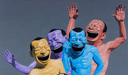 미국 부동산 버블 붕괴로 인한 글로벌 금융위기가 퍼져나가기 직전인 2007년. 영국 런던 소더비 경매에서 중국 작가의 회화 작품이 590만 달러(약 65억 원)에 낙찰된다. 당시 중국 현대미술 최고가를 기록해 화제가 됐던 이 작품은 웨민쥔(岳敏君·58)의 ‘처형’이다. 이 무렵 폭발적으로 성장했던 중국 미술 시장은 주목과 동시에 ‘거품’이라는 회의적 시각도 받았다. 시장의 지속 가능성과 관계없이 분명한 건 자국 작가에게 흔쾌히 지갑을 여는 중국 ‘큰손’의 존재감이었다. 그 분위기 속에서 생겨난 중국 현대미술의 한 단면을 볼 수 있는 전시 두 개가 동시에 열리고 있다. 서울 서초구 예술의전당에서는 ‘유에민쥔 개인전: 한 시대를 웃다!’가 열린다. 웨민쥔의 작품은 입을 크게 벌리고 웃는 남자가 등장하는 것으로 유명하다. 작가를 닮은 이 남자는 동구권 붕괴와 1989년 톈안먼(天安門) 사태 등 중국이 겪은 일련의 현대사에 대한 냉소를 상징한다. 2007년 경매 최고가를 기록한 ‘처형’에 대해 당시 소더비는 “톈안먼 사태에 영감을 받은 작품”이라며 “중국 아방가르드 예술에서 역사적으로 가장 중요한 회화”라고 설명했다. 전시장에서는 웨민쥔의 회화와 조각 작품 40여 점을 볼 수 있다. 비록 ‘처형’은 복제화가 걸렸지만, 2000년대 초반부터 최근까지 만든 대규모 회화 작품들이 전시됐다. ‘잔디에서 뒹굴다’(2009년)와 해골이 등장하는 ‘연인 1’(2012년)이 있으며, 한 전시실은 ‘웃음이 웃음이 아니다’ 조각 연작 시리즈로만 구성됐다. 근작에서는 정치적인 상황에 대한 언급보다 팝적인 요소가 두드러진다. 작품에 배트맨이나 도라에몽 같은 대중문화 캐릭터를 직접적으로 차용하기도 했다. 이러한 최근 작품들을 통해 한때 ‘정치 팝’으로 분류되기도 했던 웨민쥔의 작품세계가, 정치적 상황을 떠나 어떻게 작용할 수 있는지 관객이 직접 판단해볼 수 있을 듯하다. 1만∼1만5000원. 내년 3월 28일까지. 부산시립미술관에서는 ‘중국동시대미술 3부작: 상흔을 넘어’가 열린다. 회화보다는 다양한 재료를 활용한 설치 미술이나 퍼포먼스 작품이 주를 이루는 전시에는 주진스, 쑹둥, 류웨이 등 세 작가의 작품을 볼 수 있다. 각각 1954년생, 1966년생, 1972년생으로 세대가 나뉘어 있다. 가장 눈길을 끄는 건 작품들의 커다란 스케일이다. 쑹둥만 해도 초기 작품은 ‘입김’(1996년)처럼 퍼포먼스를 하고 사진을 찍거나, 거울을 활용한 재치 있는 영상 작품 ‘조각난 거울’(1999년)이 눈에 띈다. 그런데 최근 작품 ‘상흔’(2020년)은 전시장 입구 로비를 가득 채울 정도로 수많은 잡동사니로 구성됐다. 종이를 활용한 주진스의 ‘남과 북’(2020년)도 현재 전시장에 맞게 사이즈를 줄였다고 한다. 2000원. 내년 2월 28일까지.김민 기자 kimmin@donga.com}