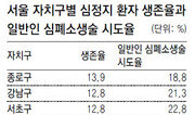 지난해 10월 서울 은평구 역촌동 빌딩 4층 계단에서 쓰러진 최모 씨(51)는 친구 덕분에 목숨을 건졌다. 친구 이모 씨가 119에 신고한 뒤 응급처방을 실시했다. 휴대전화를 통해 서울소방재난본부 의료지도실의 도움을 받아 최 씨에게 심폐소생술을 바로 시행한 것. 4분 후 현장에 도착한 구급대원은 즉각 최 씨를 병원으로 이송했다. 같은 달 서울 구로구 개봉동 자택에서 갑자기 호흡곤란을 일으키며 쓰러진 조모 씨(50)는 초기 수습이 적절치 않았던 사례. 그의 가족은 당황한 나머지 119에 신고는 했지만 발만 동동 구르면서 구급대원만 기다렸다. 서울소방재난본부도 조 씨가 심장에 문제가 있다는 사실을 파악하지 못했다. 구급대원은 9분 만에 현장에 도착했고, 자동제세동기를 가동했지만 이미 늦었다. 조 씨는 심장과 뇌에 심한 손상을 입었고 현재까지 의식불명 상태다.심근경색, 협심증, 심장부정맥으로 갑자기 쓰러진 경우 초기 대응을 얼마나 잘했느냐에 따라 서울 내에서도 생존율이 최대 5배 차이가 나는 것으로 나타났다.서울소방재난본부와 서울대병원이 지난해 발생한 심정지(심장정지) 환자 3538명을 대상으로 분석한 결과 316명(8.6%)이 건강을 회복해 퇴원했다. 이어 25개 자치구별로 분석한 결과 종로구는 101명의 심정지 환자가 발생해 이 중 14명(13.9%)이 퇴원했다. 반면 강서구는 143명의 심정지 환자 중 4명(2.8%)만이 생존해 퇴원했다.종로구, 강남구, 서초구, 강동구 등의 순으로 생존율이 높았으며 강서구, 양천구, 동대문구, 송파구 등의 순으로 생존율이 낮았다. 이 조사 결과는 최근 서울대병원에서 열린 ‘서울국제응급의료심포지움’에도 발표됐다.자치구별로 생존율이 크게 차이 나는 것은 심폐소생술과 같은 초기 대응이 지역별로 다르기 때문이다. 구급대가 응급 환자에게 도착하는 시간대는 평균 6.9분 이내로, 자치구별로 큰 차이가 없었다.실제 생존율이 가장 낮은 강서구의 경우 응급환자 발견자가 직접 심폐소생술을 시행한 경우는 2.1%에 불과했다. 양천구도 2.7%에 머물렀다. 생존율이 높은 강남구(21.3%)와 서초구(22.8%), 종로구(18.8%)에 비하면 크게 낮은 수치다. 강동성심병원 응급의학과 조규종 교수는 “종로구, 서초구, 강남구 등은 다른 지역보다 소방서 병원 등에서 일반인에게 심폐소생술 교육을 자주 한다”고 말했다.서울대병원 응급의학과 신상도 교수는 “일본과 대만의 경우 국민에게 40∼60분짜리 국민보급형 심폐소생술 프로그램을 보급하고 있다”며 “그러나 우리는 4시간 동안 심폐소생술 교육을 받도록 법으로 정하고 있어 직장인이나 학생들이 교육받기가 쉽지 않다”고 지적했다.이진한 기자·의사 likeday@donga.com}