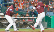 김태균(36)은 한화의 심장 같은 선수였다. 북일고를 졸업한 2001년 한화에 입단한 뒤 일본 프로야구 롯데에서 뛴 몇 년을 제외하곤 줄곧 한화의 주황색 유니폼을 입었다. 하지만 올 시즌 김태균의 위상은 예전 같지 않았다. 한용덕 감독이 지휘봉을 잡은 올해 김태균은 부상과 부진이 겹치며 정규시즌 73경기에 출전해 타율 0.315에 10홈런, 34타점을 기록하는 데 그쳤다. 데뷔 이후 최소 경기 출장이었다. 4번 타자 자리도 다른 선수에게 내줬다. 11년 만에 진출한 포스트시즌에서도 그는 존재감이 없는 선수였다. 19일 열린 넥센과의 준플레이오프 1차전에서는 선발 라인업에 이름을 올리지 못했다. 5회 대타로 나섰으나 공 3개에 허무하게 삼구삼진을 당했다. 20일 열린 2차전에는 아예 출전조차 하지 못했다. 하지만 1, 2차전 패배로 절체절명의 위기에 빠진 한화를 구한 선수는 다름 아닌 김태균이었다. 벼랑 끝에 몰렸던 한화가 22일 서울 고척스카이돔에서 열린 넥센과의 준플레이오프 3차전에서 9회초 터진 김태균의 결승타에 힘입어 넥센을 4-3으로 꺾었다. 한 감독은 이날 김태균을 5번 타선에 배치하며 “앞선 두 경기에서 공격이 제대로 되지 않았다. 오늘 연습 타격을 보니 김태균이 괜찮아 보였다. 수비보다는 공격을 중심으로 한 라인업을 짰다”고 말했다. 김태균은 2회초 무사 1루에서 상대 에이스 브리검을 상대로 깨끗한 좌전 안타를 때려내며 시동을 걸었다. 한화는 김태균의 안타를 시작으로 하주석과 최재훈의 연속 안타가 터지면서 2점을 먼저 얻었다. 해결사로서 그의 진가가 발휘된 것은 3-3으로 팽팽하던 9회였다. 선두 타자 호잉의 출루 후 이성열의 보내기 번트 작전 실패로 1사 1루의 상황이었다. 김태균은 바뀐 투수 이보근의 초구 직구를 노려 쳐 우중간을 가르는 결승 2루타로 연결시켰다. 2007년 10월 12일 삼성과의 준플레이오프 3차전 승리 이후 4028일 만의 포스트시즌 승리를 이끈 김태균은 경기 최우수선수(MVP)로 선정됐다. 1차전과 2차전에서 각각 13개와 10개의 잔루를 기록한 한화는 이날도 경기 후반까지 공격의 실마리를 잘 풀지 못했다. 2-0으로 앞선 2회 무사 1, 2루에서는 김회성이 3루수-2루수-1루수로 이어지는 삼중살을 기록했다. 역대 준플레이오프 사상 2번째이자 포스트시즌을 통틀어 3번째 나온 트리플플레이였다. 한화는 2-2 동점이던 6회초 호잉의 우월 홈런으로 다시 한 점을 앞섰지만 곧이은 6회말 실책과 폭투로 허무하게 동점을 허용했다. 1사 1루에서 김민성의 땅볼을 잡은 투수 이태양이 2루에 악송구하며 1사 1, 3루가 됐고, 한화의 4번째 투수 김범수가 폭투를 던지는 사이 3루 주자 임병욱이 홈을 밟았다. 하지만 천신만고 끝에 한 점 차 승리를 거두며 승부를 4차전으로 끌고 갈 수 있게 됐다. 8회 등판한 한화 마무리 정우람은 1과 3분의 2이닝 무실점으로 승리 투수가 됐다. 양 팀의 4차전은 23일 오후 6시 반 같은 장소에서 열린다. 한화는 박주홍이, 넥센은 이승호가 선발 등판한다. 한편 2차전에서 수비하다 어깨를 다친 넥센 이정후(20)는 정밀검사 결과 올시즌 남은 경기를 뛸 수 없다는 판정을 받았다. 이헌재 uni@donga.com·조응형 기자 ▼“2회 삼중살 때 끝나는 줄 알아”▼▽한용덕 한화 감독=정말 벼랑 끝에 몰린 상황이었는데 선발 장민재가 전혀 흔들림 없이 안정적인 투구를 해줬다. 김태균도 자기 몫을 제대로 했다. 2회 삼중살이 나왔을 때만 해도 이렇게 끝나나 보다 했는데 선수들이 개의치 않고 끝까지 하려고 하는 모습을 보였다. 오늘이 세 번째 경기인데 여전히 긴장한 모습이 보이더라. 경험이 조금씩 쌓이고 있으니 다음 경기부터는 좋아지지 않을까 생각한다. ▼“장민재 공략법 준비 미흡했다”▼ ▽장정석 넥센 감독=팀 에이스 브리검이 나선 경기를 놓쳐 아쉽다. 한화 선발 장민재 공략법에 대한 준비가 부족했던 것 같다. 장민재에게 끌려가면서 경기가 어렵게 됐다. 4차전 선발은 이승호다. 어린 선수지만 앞으로 넥센 선발을 이끌어갈 선수 중 한 명이기에 큰 무대 경험이 나쁘지 않을 것 같다. 잘 준비해서 다음 경기에서 좋은 모습을 보여드릴 수 있도록 하겠다.}