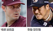한용덕 한화 감독은 18일 넥센과의 준플레이오프(5전 3선승제) 미디어데이에서 “오랫동안 기다려 주신 팬들이 좀 더 길게 가을야구 냄새를 맡을 수 있게 해드리겠다”고 말했다. 하지만 한화의 가을야구는 ‘4일 천하’로 끝날 위기에 처했다. 11년 만에 포스트시즌에 진출한 한화는 19∼20일 안방인 대전에서 열린 준플레이오프 1, 2차전을 모두 내줬다. 20일 2차전에서 한화는 선발 샘슨을 포함해 9명의 투수를 투입하고도 5-7로 졌다. 9명의 투수가 등판한 것은 역대 준플레이오프 사상 처음이다. 잦은 선수 교체로 이 경기는 준플레이오프 사상 최장(정규 이닝 기준)인 4시간 28분이나 걸렸다. 19일에 13잔루를 기록했던 한화는 이날도 번번이 득점 기회를 날리며 10개의 잔루를 기록했다. 반면 넥센은 홈런으로 손쉽게 경기를 이끌어갔다. 2차전에서 신예 외야수 임병욱(23)은 0-1로 끌려가던 4회초 한화 선발 샘슨을 상대로 역전 3점 홈런을 쏘아 올렸다. 임병욱은 5회초 다시 한 번 경기를 뒤집는 3점포를 터뜨렸다. 준플레이오프 역대 최다 타점 기록(6개)을 세운 임병욱은 경기 최우수선수(MVP)에 선정됐다. 넥센은 하루 전에는 박병호의 결승 2점 홈런으로 3-2로 이겼다. 22일 3차전에서도 넥센의 우세가 점쳐진다. 믿을 만한 선발 투수가 부족한 한화는 외국인 ‘원투펀치’를 내고도 1, 2차전을 모두 내줬기 때문이다. 한화는 3차전 선발로 오른손 투수 장민재(28)를 예고했다. 주로 중간계투로 뛰다 시즌 막판 선발로 3경기에 나선 장민재는 올 시즌 6승 2패 1홀드 평균자책점 4.68을 기록했다. 넥센은 에이스 브리검을 3차전 선발로 내세워 3연승으로 시리즈를 끝내겠다는 계획이다. 시즌 11승 7패, 평균자책점 3.84로 활약한 브리검은 16일 KIA와의 와일드카드 결정전에서도 6이닝 4실점(승패 없음)으로 비교적 호투했다. 넥센이 3차전을 잡으면 27일부터 정규시즌 2위 SK와 플레이오프(5전 3선승제)를 치른다. 두 팀의 3차전은 22일 오후 6시 반 넥센의 안방인 고척 스카이돔에서 열린다. 이헌재 기자 uni@donga.com}