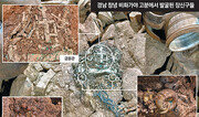 가야 고분군 중 ‘창녕 교동·송현동 고분군’은 일제강점기 이후 도굴 피해를 심하게 입은 곳으로 꼽힌다. 이 고분군의 한 무덤에서 장신구 유물이 도굴되지 않은 채 무더기로 쏟아졌다. 문화재청 국립가야문화재연구소(소장 김지연)는 경남 창녕군 교동Ⅱ군 63호분을 발굴해 조사한 결과 비화가야 지배자의 금동관 금귀걸이 구슬목걸이 등을 확인했다고 28일 밝혔다. 신발이 발견되지 않은 것만 빼면 지난달 몸 전체 장신구 일체가 발굴된 경북 경주시 황남동 신라 고분과 비슷하다. 교동Ⅱ군 63호분은 5세기 중반 조성된 것으로 추정된다. 이 고분의 2m 북쪽에 있는 39호분은 안에서 빵봉지, 고무대야, 양동이가 발견되는 등 도굴로 황폐화돼 있었다. 창녕 지역 비화가야 고분은 덮개돌 사이를 비집고 들어가면 유물을 쉽게 훔칠 수 있는 구조여서 비화가야 유물은 그동안 금동관 조각이나 장신구만 확인됐을 뿐 전모를 알 수 없었다. 이번에 발견된 유물의 면면은 화려하다. 머리 위치에서는 높이 21.5cm 금동관이 확인된다. 나뭇가지 모양 장식이 3단으로 세워져 있고, 관테 아래에는 곱은옥과 금동구슬이 드리워져 있다. 관 속에는 관모(冠帽)로 추정되는 직물의 흔적도 발견됐다. 양쪽 귀 부분에서는 굵은고리귀걸이 1쌍이, 목과 가슴에는 남색 유리구슬을 서너 줄로 엮은 구슬목걸이가 걸려 있었다. 은장식 손칼이 달린 은허리띠를 둘렀으며 양손에는 각각 은반지 1개(오른손), 3개(왼손)가 확인됐다. 오른 팔뚝 부분에서는 원형금판에 연결된 곱은옥과 주황색 구슬도 나왔다. 팔찌나 손칼을 장식했을 것으로 보인다. 국립가야문화재연구소는 이 무덤의 주인을 키 155cm가량의 최고 지배계급이고, 긴 칼 대신 굵은귀고리와 손칼이 발견된 점을 감안해 여성으로 추정했다. 무덤 안팎으로 순장자가 최소 5명 묻힌 흔적도 나타났다. 이들은 무덤 주인공과 같은 방향으로 목관에 안치돼 낮은 계급은 아닐 확률이 높다. 무덤 구조와 출토된 토기는 전형적인 가야 양식이지만 장신구는 신라의 것과 유사하다는 점도 특징이다. 양숙자 학예실장은 “낙동강 동쪽에 있던 비화가야가 신라와 교류가 많았던 것으로 유추할 수 있다”며 “다만 무덤 양식이 가장 보수적으로 변화하기 때문에 고고학적으로 가야 것일 가능성이 높다”고 설명했다. 문화재청은 2014년부터 비화가야 최고 지배층의 것으로 추정되는 묘역 중 미정비지역을 조사하다 63호분을 발견했다. 지난해 11월 대형 덮개돌을 크레인으로 들어 올리고 본격적인 발굴 작업에 착수했다. 국립가야문화재연구소는 다음 달 5일 유튜브를 통해 이번 발굴조사에 참여한 단원들이 출연하는 실시간 온라인 발굴조사 설명회를 연다. 김민 기자 kimmin@donga.com}