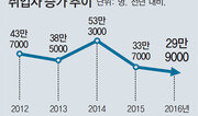 정부가 지난해 실업자가 처음으로 100만 명을 넘어섰다고 발표했지만 ‘비공식’ 실업자를 합치면 그 규모는 훨씬 더 클 것으로 분석됐다. 취업준비생, 구직 활동을 포기한 주부 등은 공식 통계에서 실업자로 분류되지 않기 때문이다. 11일 통계청이 발표한 ‘2016년 연간 고용동향’에 따르면 비경제활동인구 중 ‘취업준비생’만 지난해 62만8000명에 이르는 것으로 집계됐다. 1년 전보다 3.0% 늘어난 수준이다. 이들은 당장 입사원서를 내진 않지만 도서관에서 입사시험을 준비하거나 각종 기능학원에 다니는 사람들이다. 대학·대학원생 등으로 분류되는 399만6000명 중에는 취업이 안 돼 졸업을 유예하거나 대학원에 가는 사람들이 포함돼 있다. 이들은 사실상 고용 정책의 ‘사각지대’로 남아 있다. 그래서 정부가 공식 실업자로 분류되지 않는 비공식 실업자를 위해 적극적인 고용 대책을 마련해야 한다는 지적이 있다. 이들 상당수는 원하는 일자리를 얻기 위해 자발적으로 ‘비경제활동’을 선택한 것으로 추정된다. 통계에서는 4주간 적극적으로 구직 활동을 했는데도 일자리를 찾지 못한 사람만 실업자로 분류한다. 청년층의 ‘숨어 있는 실업자’ 상황은 더욱 심각하다. 지난해 6월 현대경제연구원이 고용 보조지표를 확장해 자체적으로 추산한 청년 실업자는 2015년 8월 기준 179만2000명으로 통계 상 공식 실업자(34만5000명)의 5배가 넘었다. 한편 국내 금융권에선 최근 3년간 1만2000여 개의 일자리가 사라진 것으로 나타났다. 기업 경영성과 평가 사이트 CEO스코어에 따르면 2013년 3분기부터 1년간 은행, 보험 등 102개 금융사의 고용 인원은 22만303명에서 20만7990명으로 5.6%(1만2313명) 줄었다.세종=박희창 ramblas@donga.com /김성모 기자}