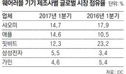 시계냐 밴드냐. 올해 1분기(1∼3월) ‘손목 위 스마트 전장’에서 스마트워치가 피트니스밴드를 상대로 판정승을 거뒀다. 헬스케어에 특화된 기능으로 주목받았던 스마트밴드가 모바일 결제와 인공지능(AI) 비서 등으로 기능을 차별화한 스마트워치에 점차 밀리는 형국이다. 7일 미국 시장조사업체 IDC에 따르면 올 1분기 글로벌 웨어러블 기기 시장에서 피트니스밴드 제조사 ‘핏비트’의 점유율은 12.3%였다. 지난해까지 수년간 1위를 지켜오다 3위로 추락한 것이다. 핏비트의 시장점유율은 지난해 1분기 23.2%에서 1년 만에 10%포인트 가까이 하락했다. 1, 2위는 각각 중국 샤오미와 미국 애플이었다. 시장점유율은 각각 14.7%, 14.6%였다. 지난해 1분기 220만 대를 팔았던 애플은 올 1분기 360만 대의 판매량을 올렸다. 4위는 5.5%(140만 대)의 점유율을 차지한 삼성전자였다. 삼성전자의 1분기 판매량은 전년보다 두 배로 늘었다. 핏비트는 건강관리 기능에 특화된 피트니스밴드로 한때 시장점유율 70% 이상을 독식했던 웨어러블 기기의 대표 주자였다. 지난해 첫 스마트워치 제조사인 페블을 인수하는 등 뒤늦게 스마트워치로 영토를 확장했지만 애플과 삼성전자 등 스마트폰 강자들의 거센 도전을 받으며 점유율이 감소했다. 핏비트는 지난해 4분기(10∼12월) 제품 판매 부진으로 2015년 기업공개 후 첫 적자를 냈다. 애플은 샤오미, 삼성전자 등 경쟁 기업들과 달리 스마트밴드를 만들지 않고 스마트워치에만 집중하고 있다. 2015년 4월 애플워치를 선보인 지 2년도 안 돼 분기 기준 점유율 1위에 올랐다. 삼성전자도 올해 기어S3 등 스마트워치 신제품을 출시하면서 추격에 고삐를 당기고 있다. 피트니스밴드 수요 둔화는 소비자들이 모바일 결제 등 똑똑한 기능을 더 선호하기 때문이다. IDC는 “소비자 취향이 건강밴드에서 스마트워치로 진화하고 있다”고 분석했다. 업계에서는 스마트워치가 스마트폰 없이도 구동할 수 있는 독립적인 기기로 업그레이드되면 시장이 더욱 커질 것으로 기대한다. 1분기 글로벌 웨어러블 기기 전체 출하량은 2470만 대로 전년보다 18% 늘어났다.신동진 기자 shine@donga.com}