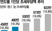 국세와 지방세를 합쳐 내년에 국민 한 사람이 부담해야 할 세금은 평균 490만 원으로 올해보다 34만 원이 더 늘어난다. 세금이 오르지만 기업 실적과 국민 소득도 함께 늘어나기 때문에 국내총생산(GDP)에서 세금이 차지하는 비중인 조세부담률은 내년에도 올해와 동일한 19.3%에 머물 것으로 전망된다. 하지만 2012년 이후에는 세금 부담이 더 커지면서 조세부담률도 매년 증가할 것으로 보인다. 기획재정부가 16일 발표한 ‘2011년 국세 세입예산안’에 따르면 내년도 국세는 올해보다 12조8000억 원(7.3%) 늘어난 187조8000억 원에 이를 것으로 추산된다. 또 지방세를 합한 총조세수입은 239조9000억 원으로 222조9000억 원이었던 올해에 비해 7.6% 증가할 것으로 예상된다. 세목별로는 법인세의 증가가 두드러질 것으로 보인다. 내년도 법인세는 올해 기업들의 실적 호조에 힘입어 41조4500억 원에 이를 것으로 보인다. 올해보다 5조100억 원(13.8%) 증가한 것이다. 세수 규모가 가장 큰 부가가치세도 올해보다 3조4000억 원(6.9%) 늘어난 52조9000억 원으로 추산된다. 경기회복세 속에 임금과 취업자 수가 증가하며 내년 근로소득세 역시 올해보다 1조2000억 원(8.1%) 늘어난 16조5000억 원에 이를 것으로 예상된다. 하지만 양도소득세는 부동산 경기 위축으로 올해보다 1000억 원(1%) 늘어난 8조7000억 원에 머물 것으로 보인다. 한편 2012년 국민 한 사람이 연간 부담해야 할 세금은 530만 원, 2013년 573만 원, 2014년 623만 원으로 증가폭이 매년 8% 이상 될 것으로 보인다. 같은 기간 정부의 총조세수입(국세와 지방세를 합친)도 매년 8∼9% 증가해 2012년 260조3000억 원, 2013년 281조5000억 원, 2014년 306조7000억 원에 이를 것으로 예상된다. 정부는 글로벌 금융위기로 마련됐던 비과세와 감세 조치가 사라지고 현재와 같은 경제여건이 지속되면 이 같은 추세가 나타날 것으로 보고 있다. 재정부 관계자는 “경기회복세가 이어지면서 매년 5%의 실질 경제성장률(경상 기준으로는 7.6%)이 유지되고 2008년 터진 글로벌 금융위기로 추진됐던 각종 비과세와 감세 조치가 축소되면서 세수가 늘어나게 된 것을 반영한 결과”라고 설명했다.이세형 기자 turtle@donga.com}