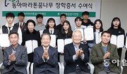 박지원(배문고)과 최수인(김천한일여고) 등 국내 육상 장거리(5000m, 10km)의 고교 유망주 14명이 18일 서울 종로구 청계천로 동아미디어센터에서 2019 동아마라톤 꿈나무 장학금을 받았다. 박지원은 올 6월 제47회 KBS배 전국육상경기대회 남자부 5000m에서 14분38초43으로 올 시즌 남자 고교 랭킹 1위 기록을 세웠다. 최수인도 같은 대회 여자부 5000m에서 17분38초87의 여자 고교 랭킹 1위 기록을 냈다. 동아마라톤꿈나무재단은 매년 육상 장거리에서 뛰어난 성적을 낸 남녀 고교 선수 20명을 선정해 이 상을 수여한다. 재단은 1992년 바르셀로나 올림픽 마라톤에서 금메달을 딴 황영조(국민체육진흥공단 감독)의 뒤를 이을 선수를 육성하기 위해 2002년 만들어졌다. 올해는 남자부 박지원을 비롯해 신용민, 오성일(이상 배문고)과 여자부 지희원, 김도희(이상 서울체고), 홍채민(남한고)이 상·하반기 연속 장학생으로 뽑혀 400만 원(반기당 200만 원)을 받았다. 이연택 재단 이사장은 “강한 의지와 도전 정신으로 국제무대에서 활약해 주기를 바란다”고 당부했다. 배호원 대한육상연맹 회장은 “꿈을 가지고, 자기 자신을 극복하고, 달리기에 미친다면 여러분은 성공한 인생을 살 수 있을 것”이라고 말했다. 조응형 기자 yesbro@donga.com ◇2019년 동아마라톤꿈나무 ▽남자=박지원 신용민 오성일(이상 배문고) 이재웅(경북영동고) 장준표(김해가야고) 이준수(단양고) 탁인후(서울체고) ▽여자=지희원 김도희(이상 서울체고) 최수인(김천한일여고), 이하늘(경기체고), 홍채민(남한고), 이유정(대전체고), 연유빈(경북성남여고)}