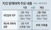 내년부터 2층 이상 신축 건축물의 내진 설계가 의무화된다. 내진 보강을 하면 재산세와 취득세를 감면받는 대상도 현재 ‘연면적 500m² 미만, 2층 이하’에서 모든 건축물로 확대된다. 정부는 27일 황교안 국무총리 주재로 ‘제9차 국민안전 민관합동회의’를 열고 이런 내용의 지진 방재대책을 확정했다. 민간 건축물의 내진율을 높이는 것이 핵심이다. 국내 민간 건축물의 내진율은 30.3%로 일본(82%)에 크게 못 미친다. 하지만 최근 한반도 주변 지진이 잇따르면서 국민의 불안감도 커지고 있다. 1980년대 연평균 16회였던 지진(규모 3.0 이상) 발생횟수는 1990년대 26회, 2000년대 44회, 2010년대 56회로 늘었다. 정부는 현행 ‘3층 이상 또는 연면적 500m² 이상’인 신규 건축물의 내진 설계 기준을 ‘2층 이상’으로 확대하기로 했다. 그 대신 내진 보강을 하는 기존 건축물에는 인센티브가 늘어난다. 층수나 면적과 상관없이 모든 건축물의 재산세와 취득세를 감면하고 건폐율과 용적률도 완화된다. 취득세는 50%, 재산세는 5년 동안 매년 50%씩 감면된다. 지진보험에 가입하면 신규 건축물은 30%, 기존 건축물은 20%까지 보험료가 할인된다. 지진 경보 시간은 현재 발생 후 50초 이내에서 2020년까지 10초 이내로 단축할 방침이다. 긴급 대피에 필요한 ‘골든타임’ 확보를 위해서다. 지진 감지 시간을 줄이기 위해 현재 200곳인 관측소는 314곳으로 늘어난다. 국외에서 발생한 지진이더라도 진도 4 이상의 진동이 감지되는 지역의 주민에게는 긴급재난문자를 제공한다. 이번 회의에서는 노인 안전을 위한 대책도 마련됐다. 보건복지부는 다음 달 말까지 전국 노인요양원 5400여 곳의 학대 여부 등 인권 실태를 전수 조사한다. 특히 시설 평가 점수가 좋지 않았던 3000여 곳은 건강보험공단과 지방자치단체 합동으로, 최근 3년 새 학대가 발생했던 시설 190곳은 복지부가 직접 현장을 방문해 점검한다. 지난해 노인 학대 판정건수는 3818건으로 5년 전보다 24.4% 증가했다. 요양시설 내 안전사고를 예방하기 위해 소형 요양병원에 스프링클러와 자동화재속보설비 등 소방안전 설비를 반드시 설치하도록 관련법도 고치기로 했다.박성민 min@donga.com·조건희 기자}